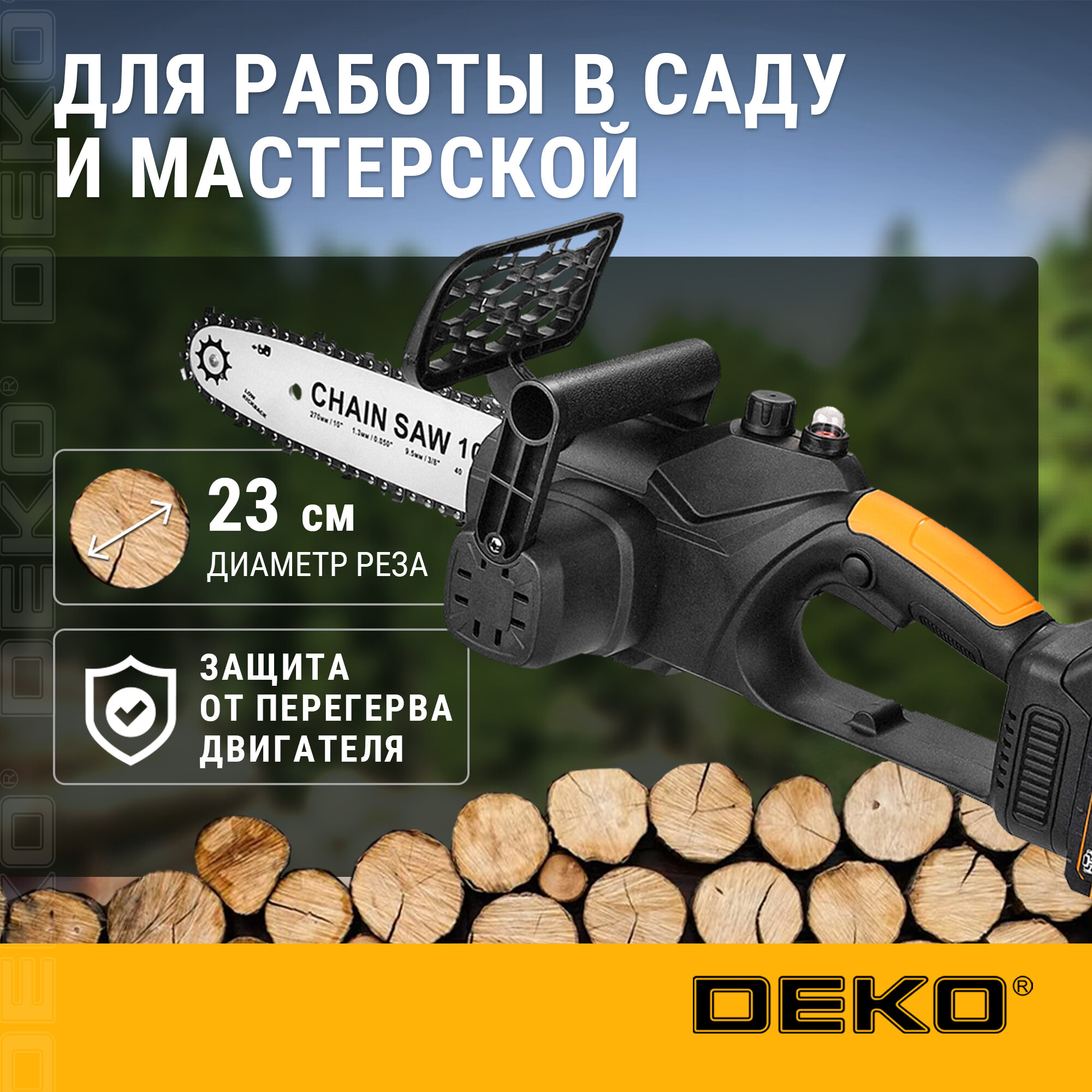 10 цен на Аккумуляторная пила Deko DKCHS 20, 10", 20В, 2x4.0Ач, з/у 081-2001