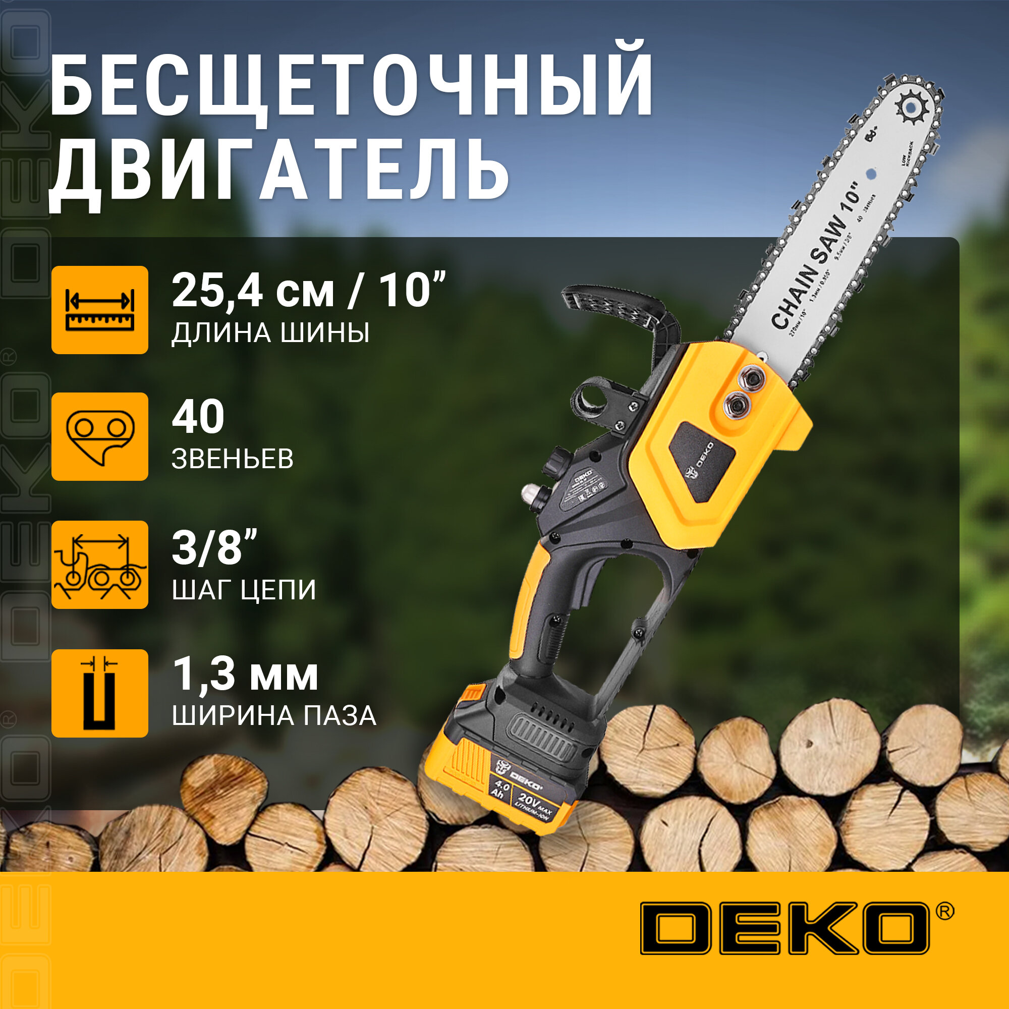 Пила цепная аккумуляторная бесщеточная DEKO DKCHS 20V, 20В, 2x4.0Ач 6 290 ₽