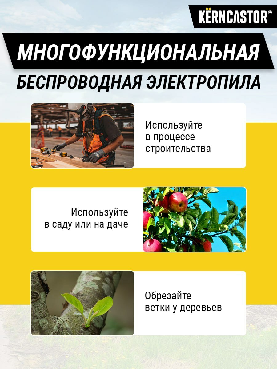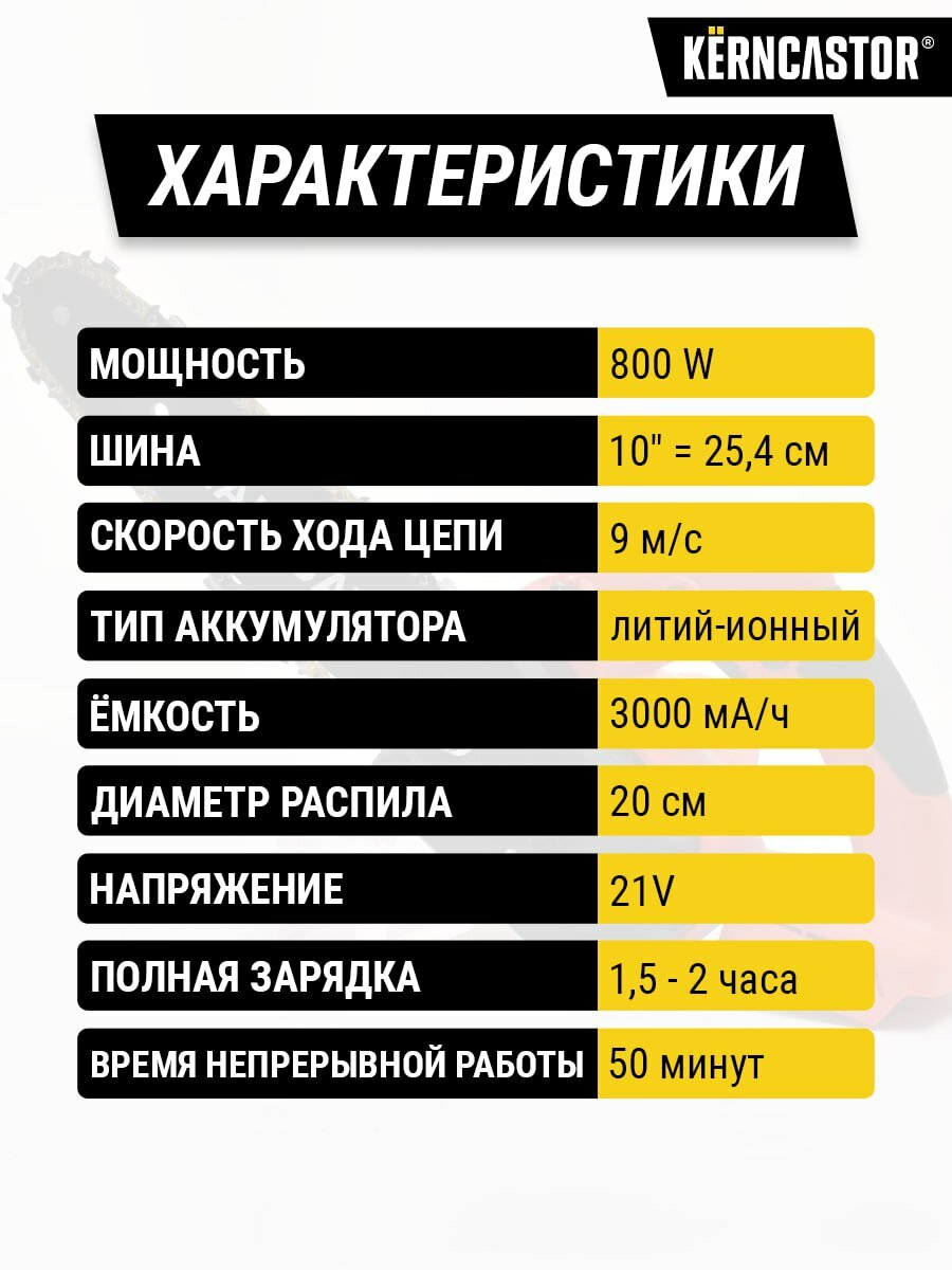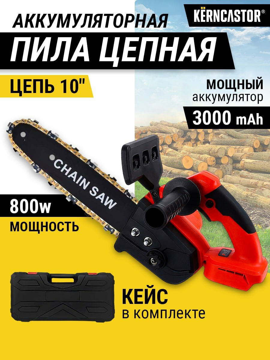 Аккумуляторная цепная пила большая шина 10' аккумулятор 3000мАч KERNCASTOR информация: