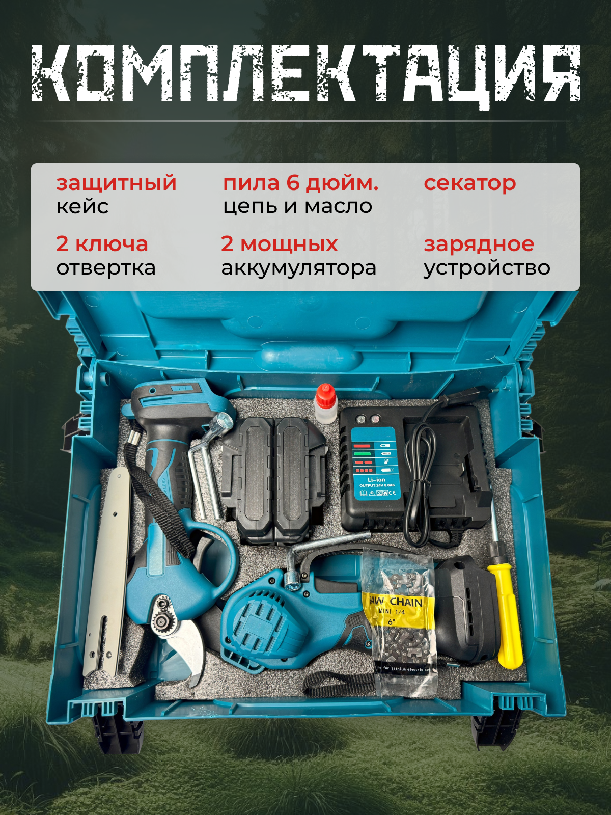 Набор аккумуляторный мини пила и бесщеточный секатор с 2 аккумуляторами информация: