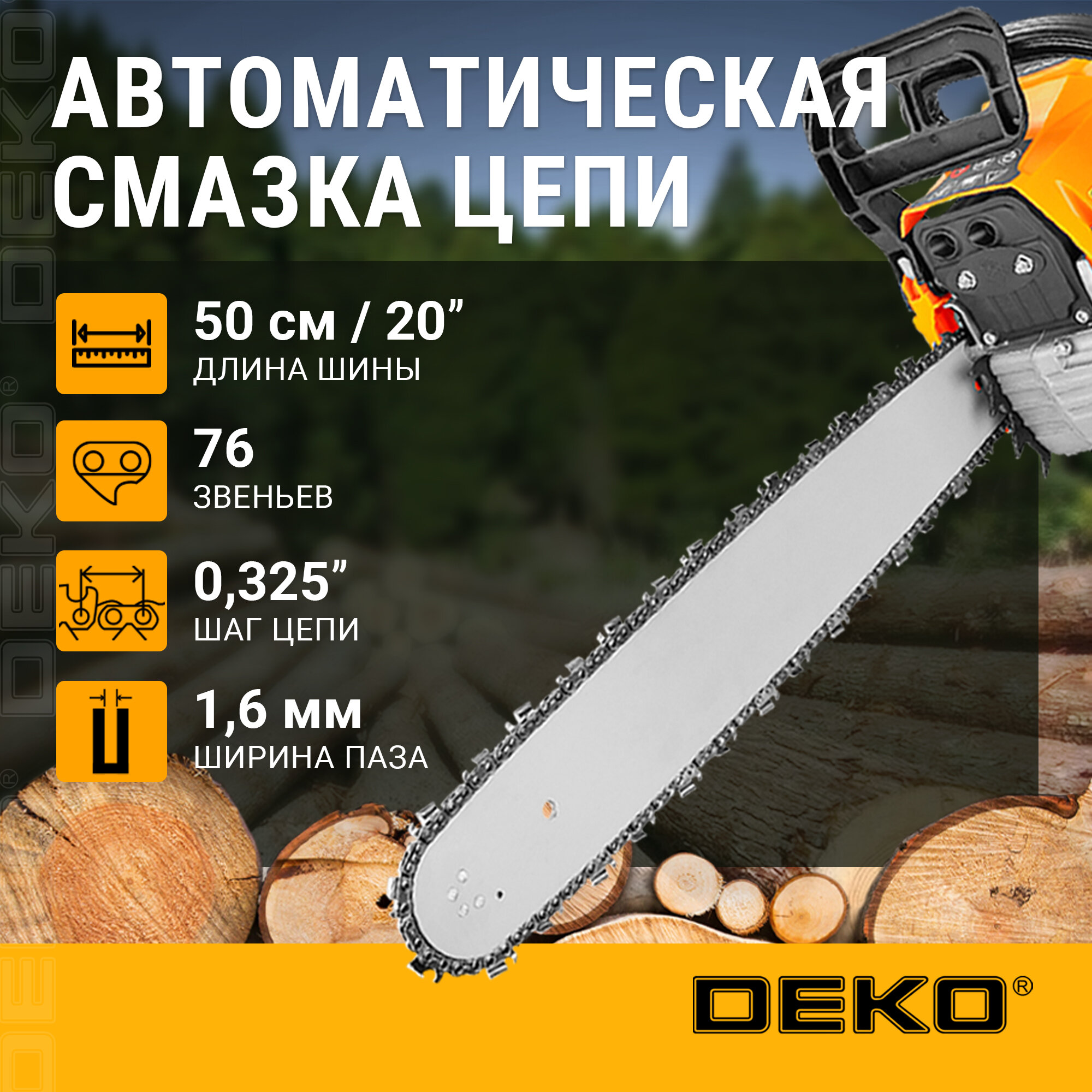 Бензопила DEKO DKCHS 62-20, 3,7 л.с., 62 куб.см, 20" информация: