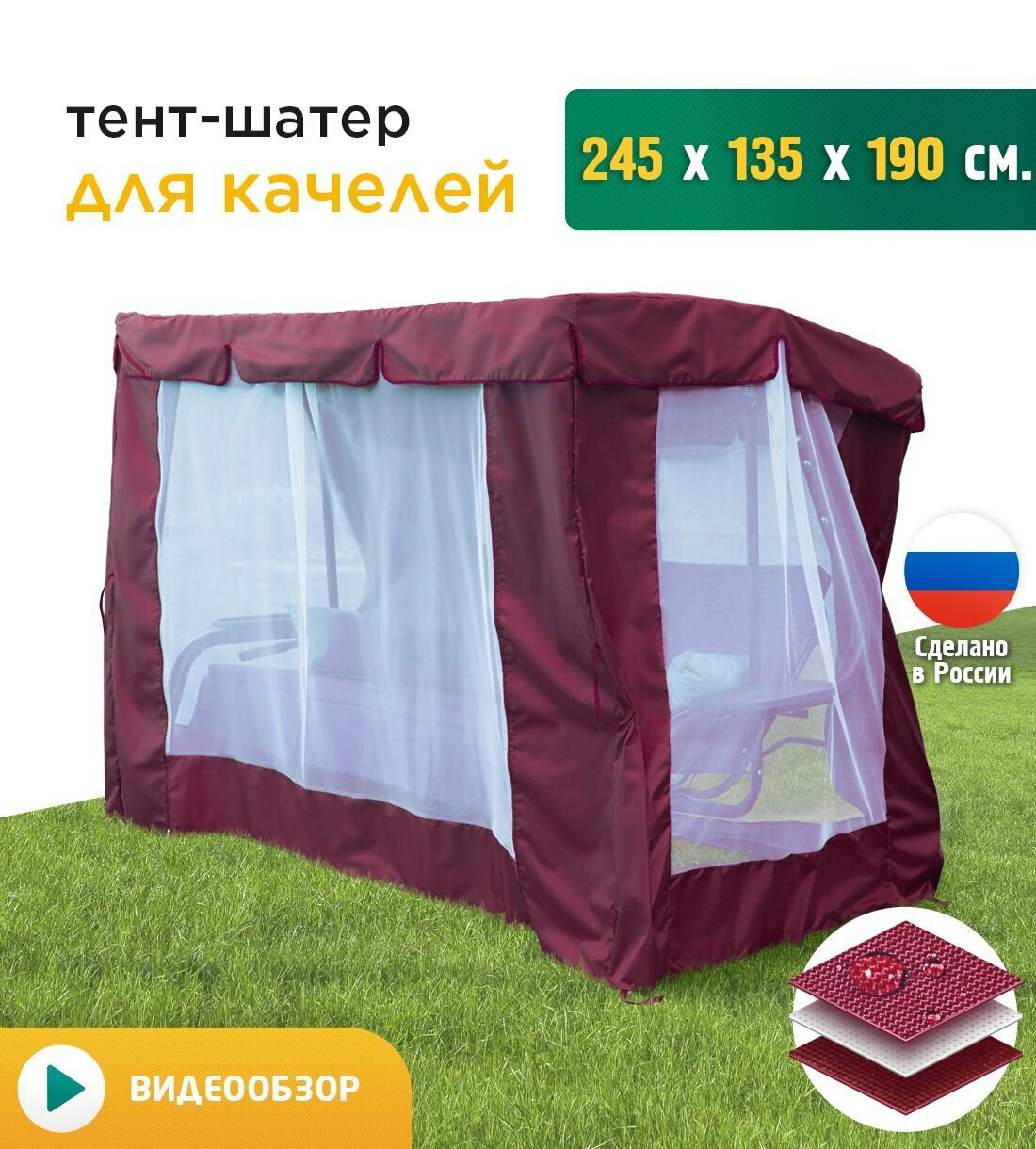 Отзывы на Тент-шатер + москитная сетка для качелей (245х135х190 см) бордовый