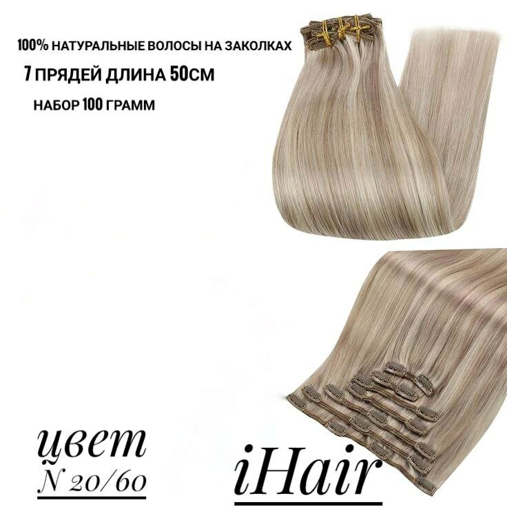 10 цен на Натуральные волосы на заколках №20/60, длина 50см, 100 г.
