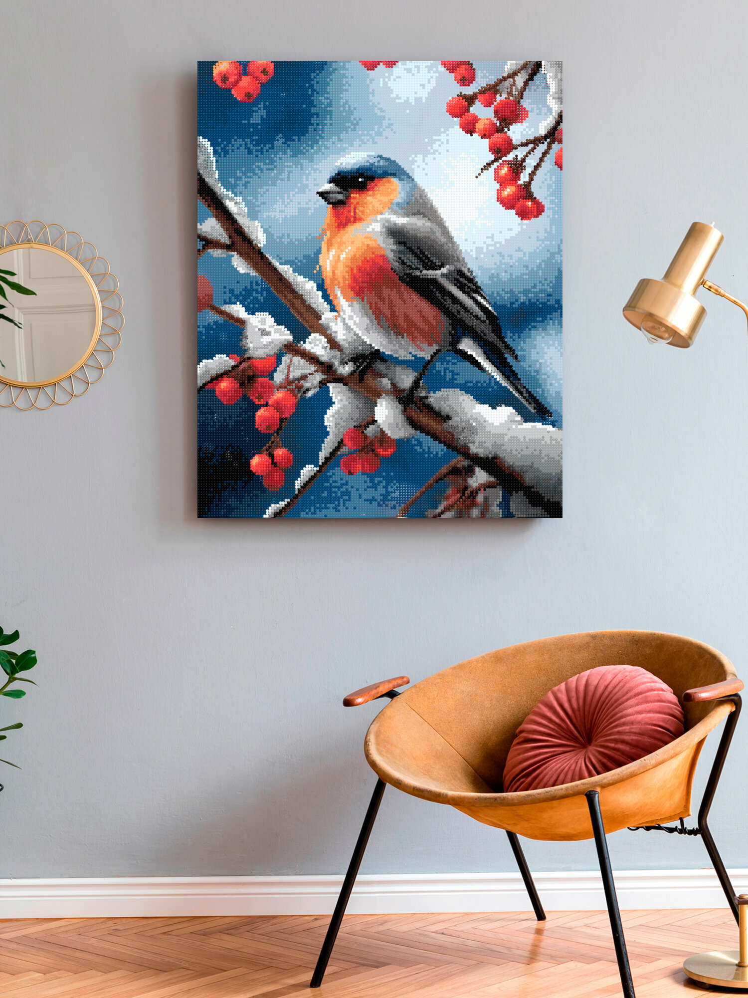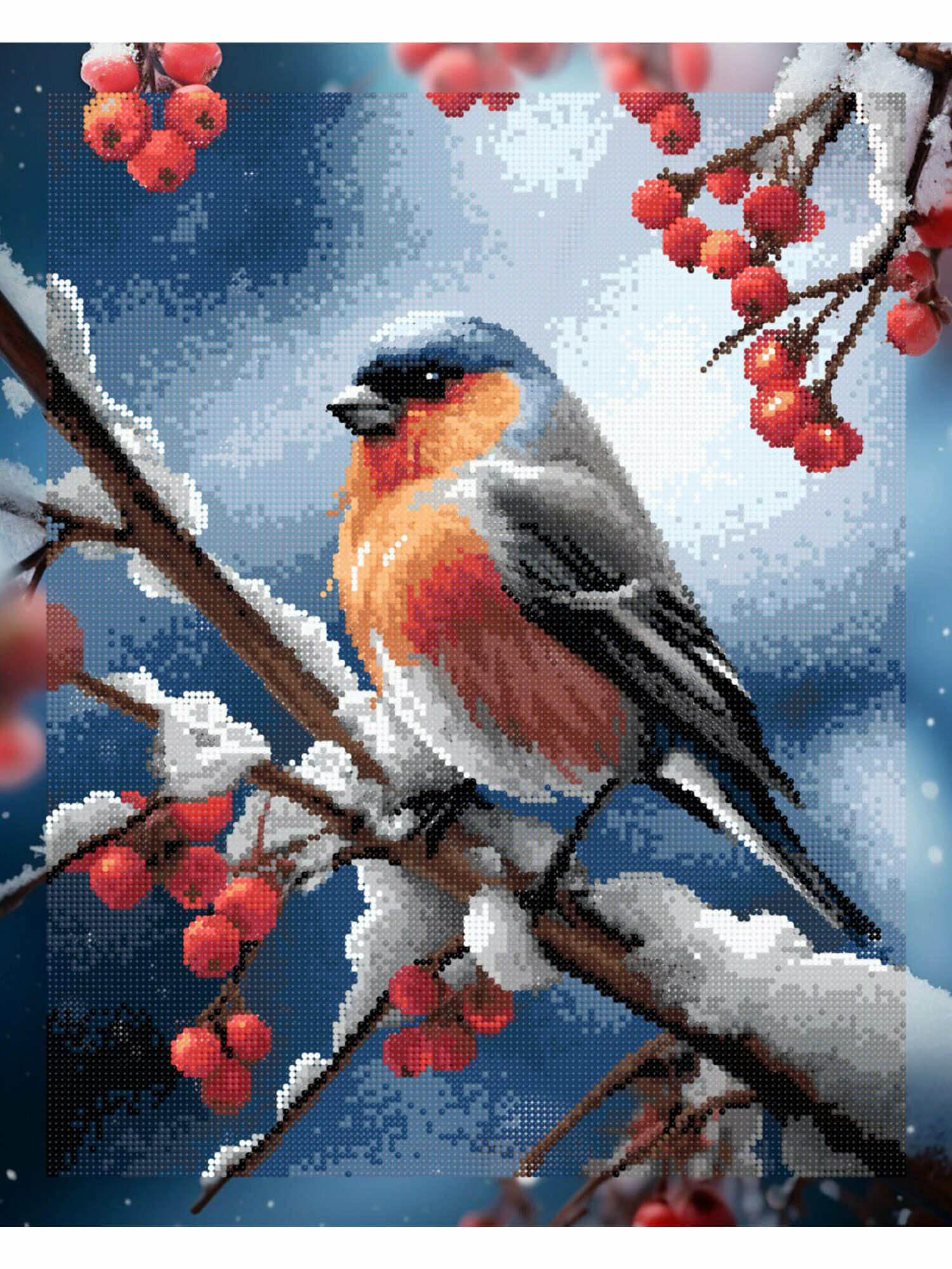 10 цен на Алмазная мозаика на подрамнике 40х50 см "Снегирь". Холст на подрамнике. Алмазная вышивка. Картина стразами