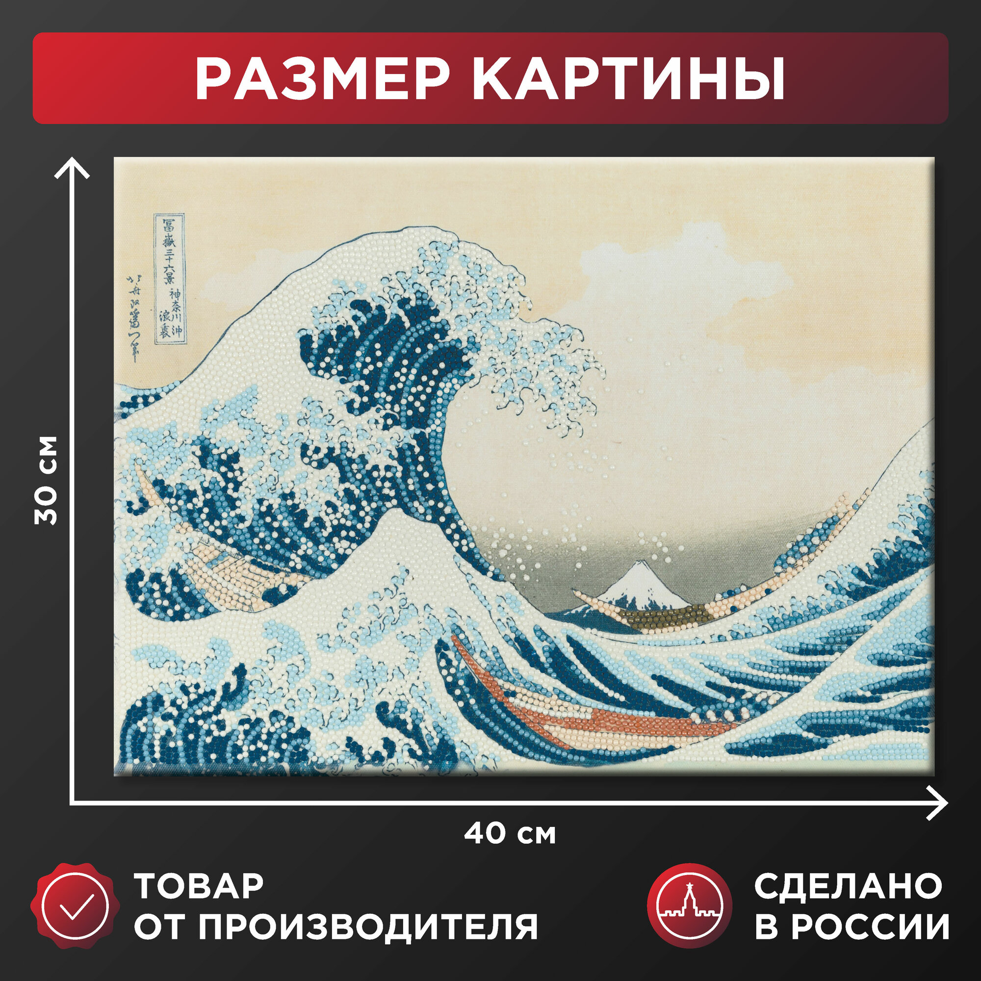 Алмазная мозаика на подрамнике "фрея" "Большая волна в Канагаве, Кацусика Хокусай" MET-ALPD-024, 40 х 30 см информация: