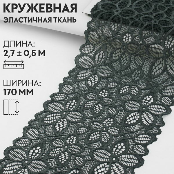 10 цен на Кружевная эластичная ткань, 170 мм x 2.7 +- 0.5 м, цвет графитовый