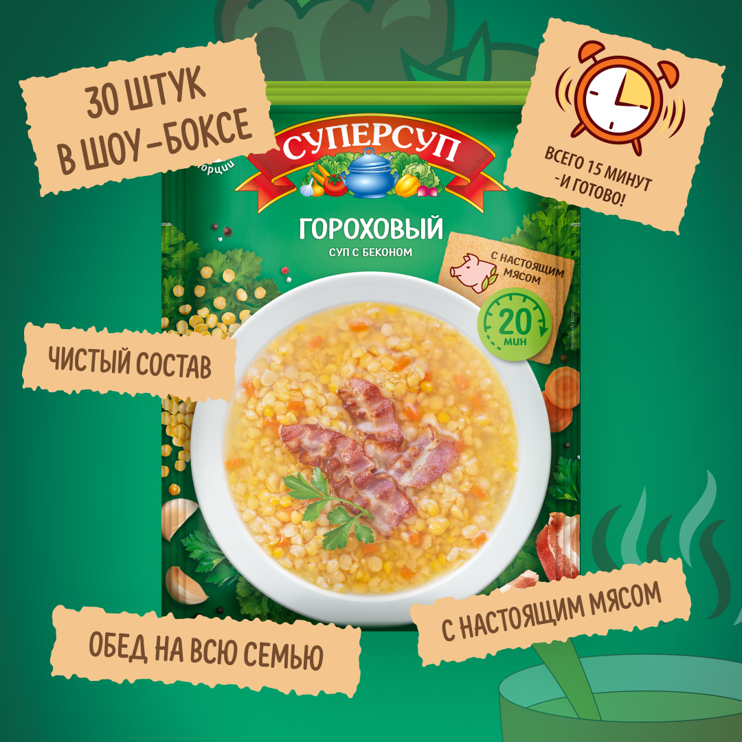 10 цен на Суп Гороховый с беконом 70 гр х 30 шт, Суперсуп