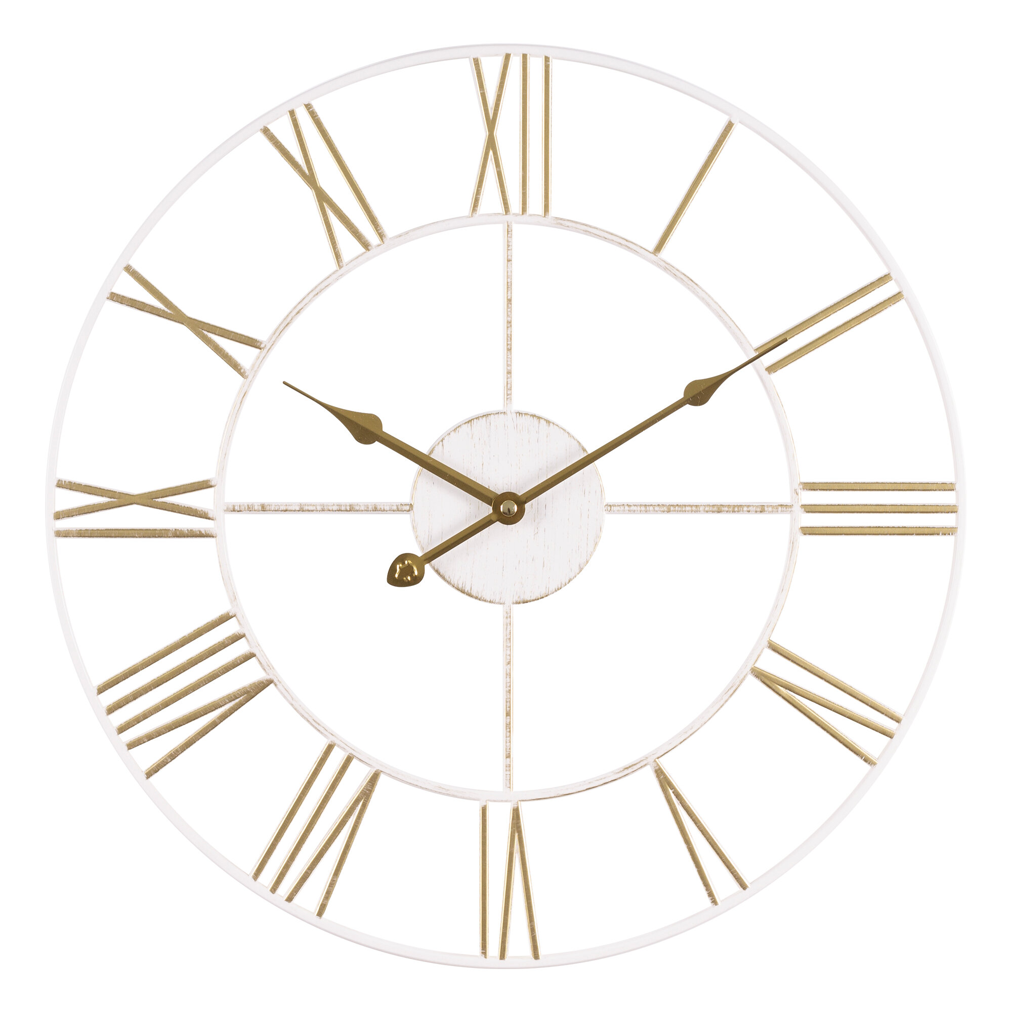 10 цен на Большие настенные часы Лофт, бесшумные часы d=48 см, часы с римскими цифрами, открытая стрелка, Белый Золото/ Белые большие часы металл