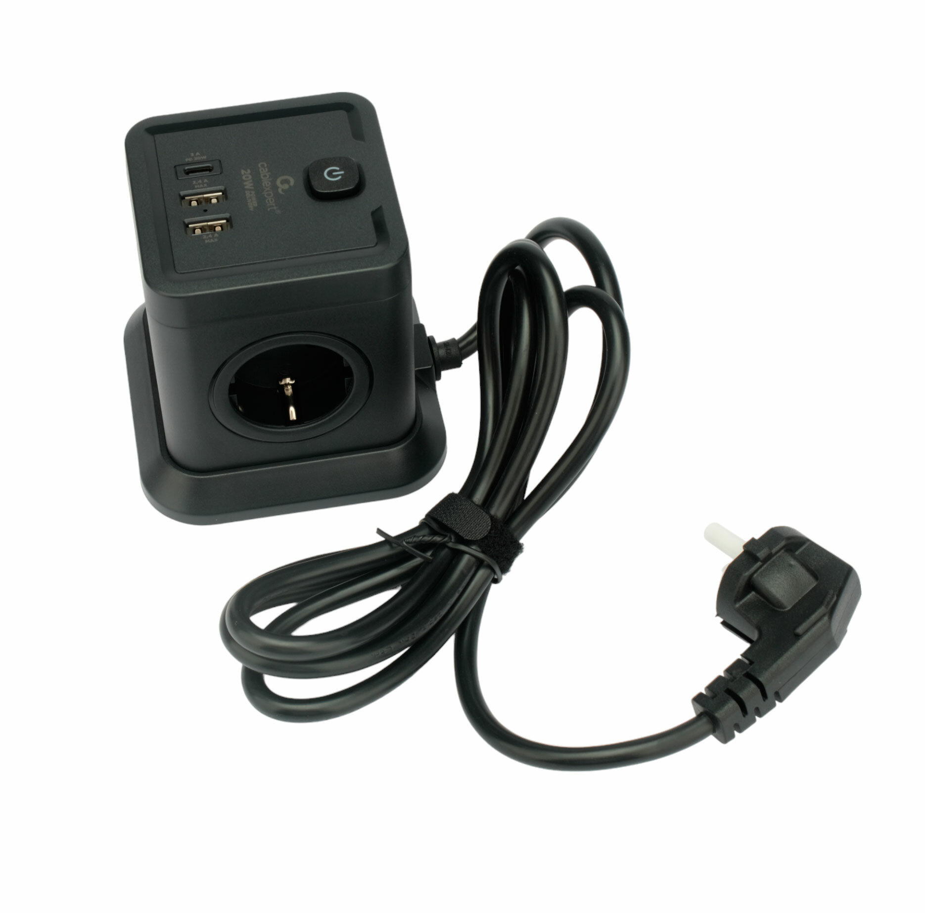 Сетевой фильтр Cablexpert Cube, 3 розетки, 1xType-C, 3xUSB, 1.5м, черный, коробка 1 810 ₽
