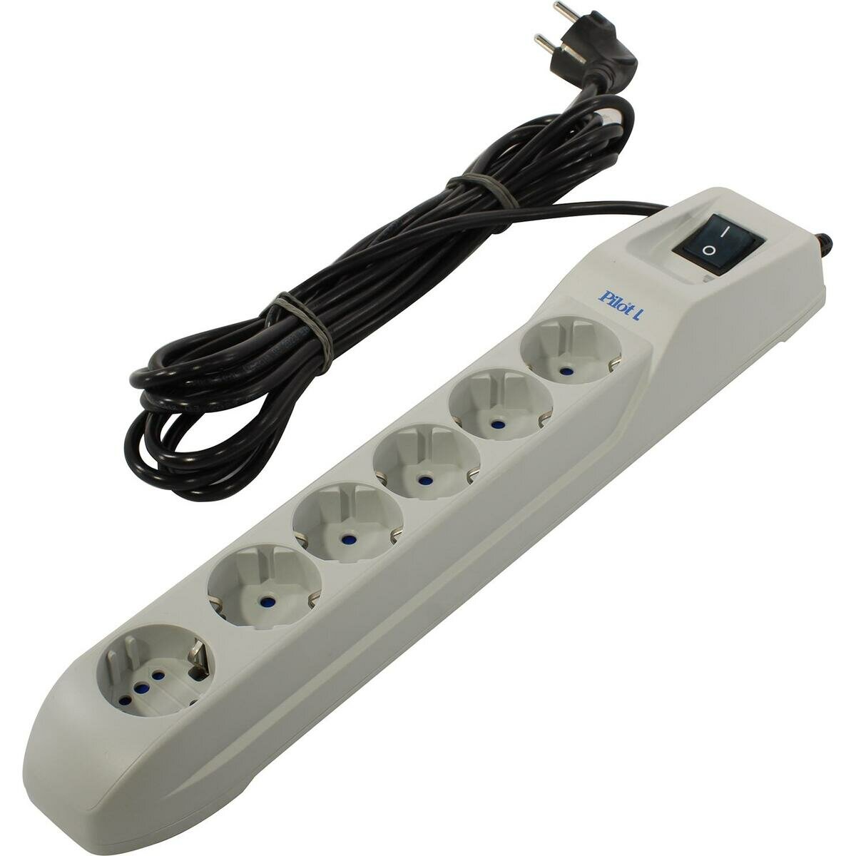 Сетевой фильтр Pilot L GP 6 розеток (5 евро + 1GP) 7 м/ Surge protector Pilot L GP 6 outlets (5 EUR + 1GP) 7 m white