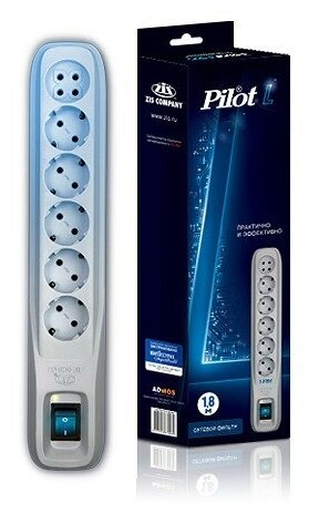Сетевой фильтр Zis PILOT L (GP) 6 розеток 1.8 м белый (171) (Pilot L-6 (GP) 1.8M)
