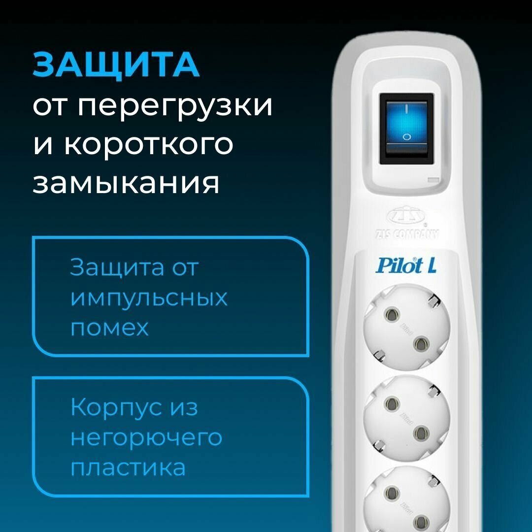 Сетевой фильтр ZIS Pilot Белый, L GP, 6 розеток, 5 м, 10 А, 800 Дж (173)