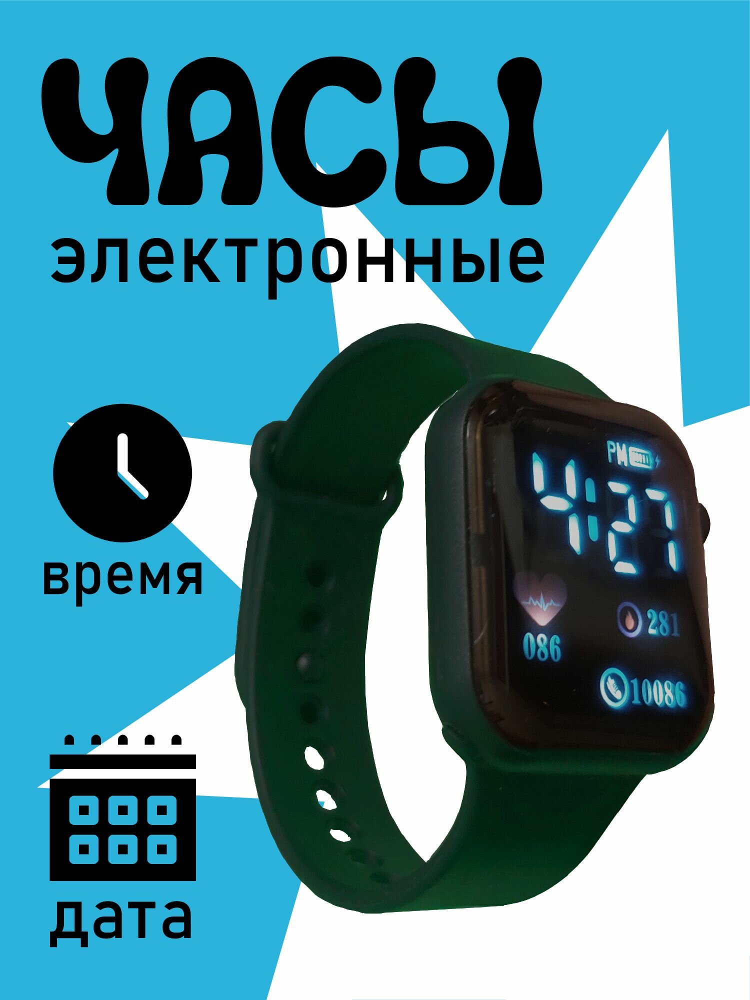 10 цен на Часы электронные силиконовые, темно-зеленый