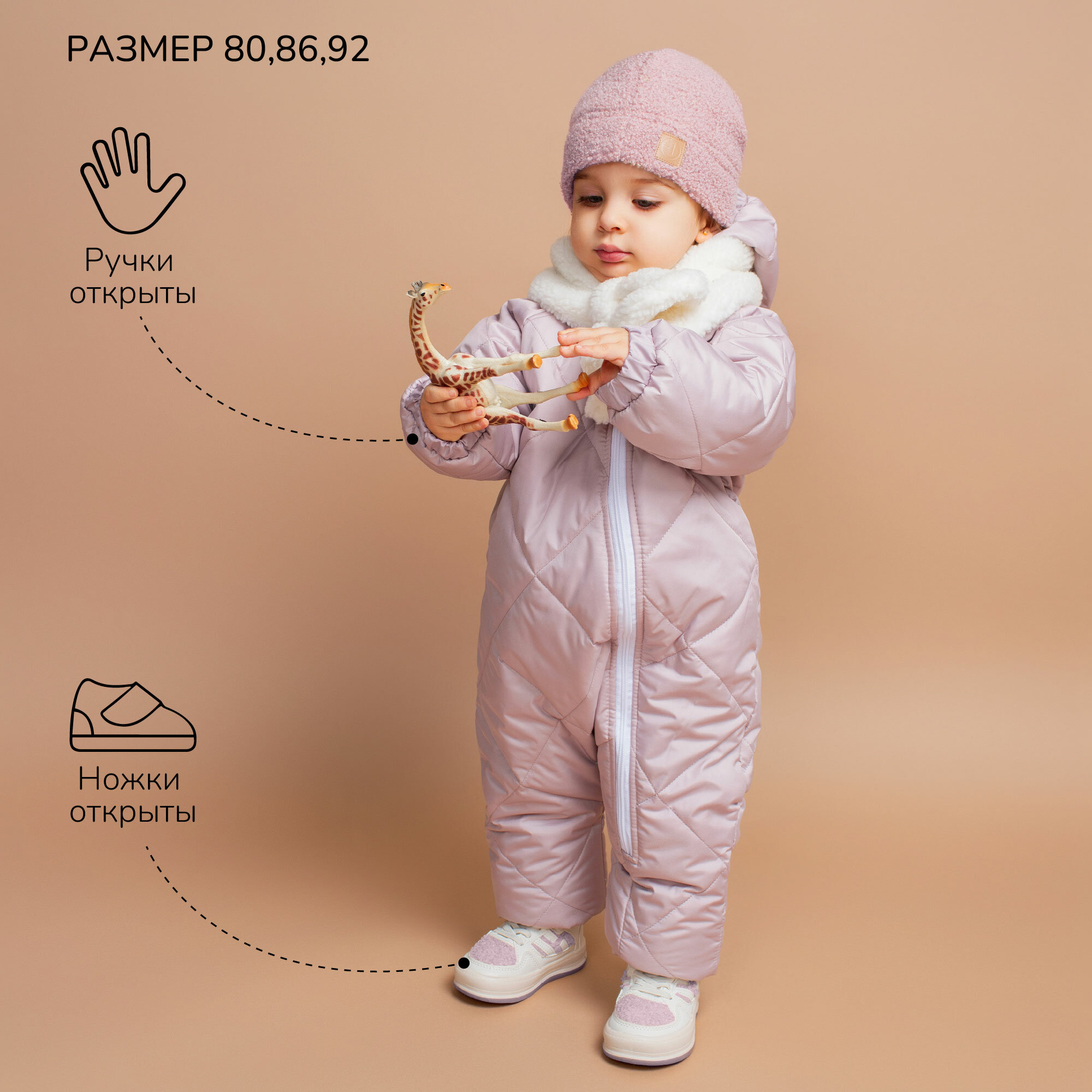 Комбинезон детский демисезонный стеганый с открытыми ножками Amarobaby ELF, лавандово-серый, размер 80 4 966 ₽