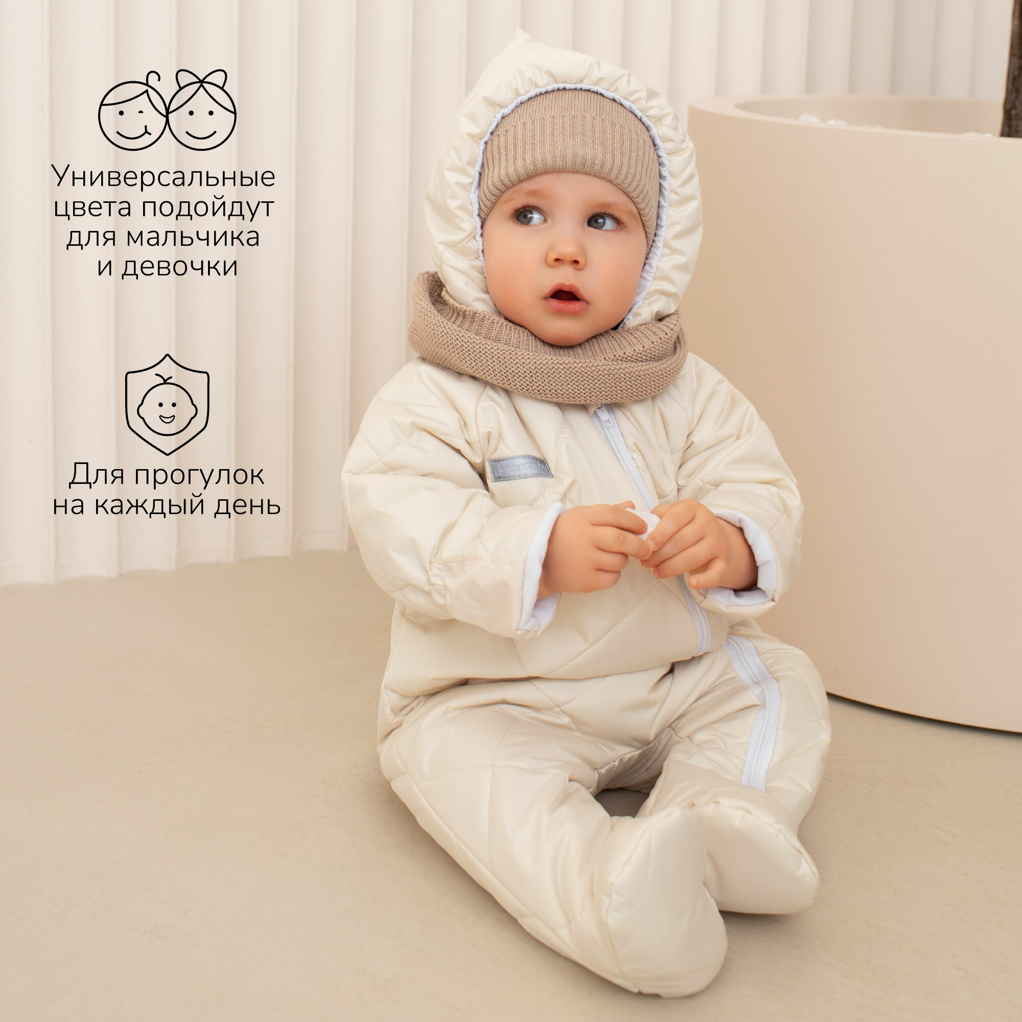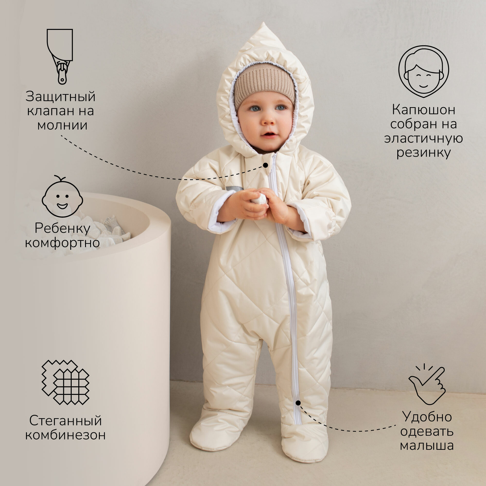 Комбинезон детский демисезонный стеганый с закрытыми ножками Amarobaby ELF, молочный, размер 74 4 624 ₽