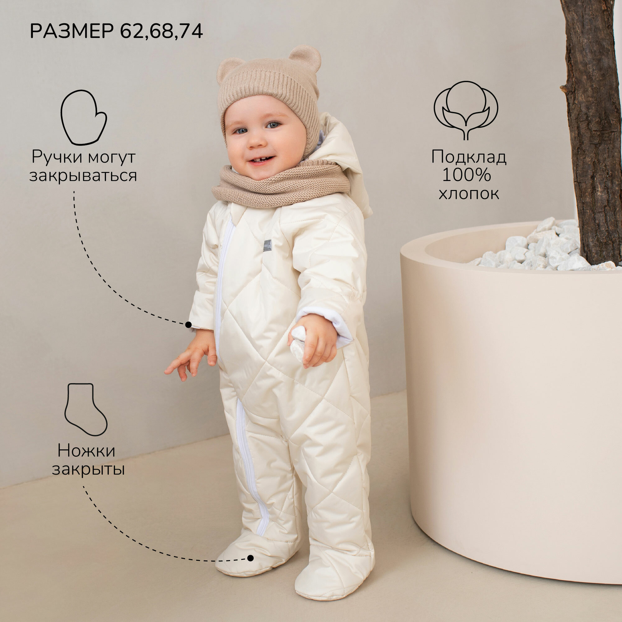 Комбинезон детский демисезонный стеганый с закрытыми ножками Amarobaby ELF, молочный, размер 62 4 624 ₽