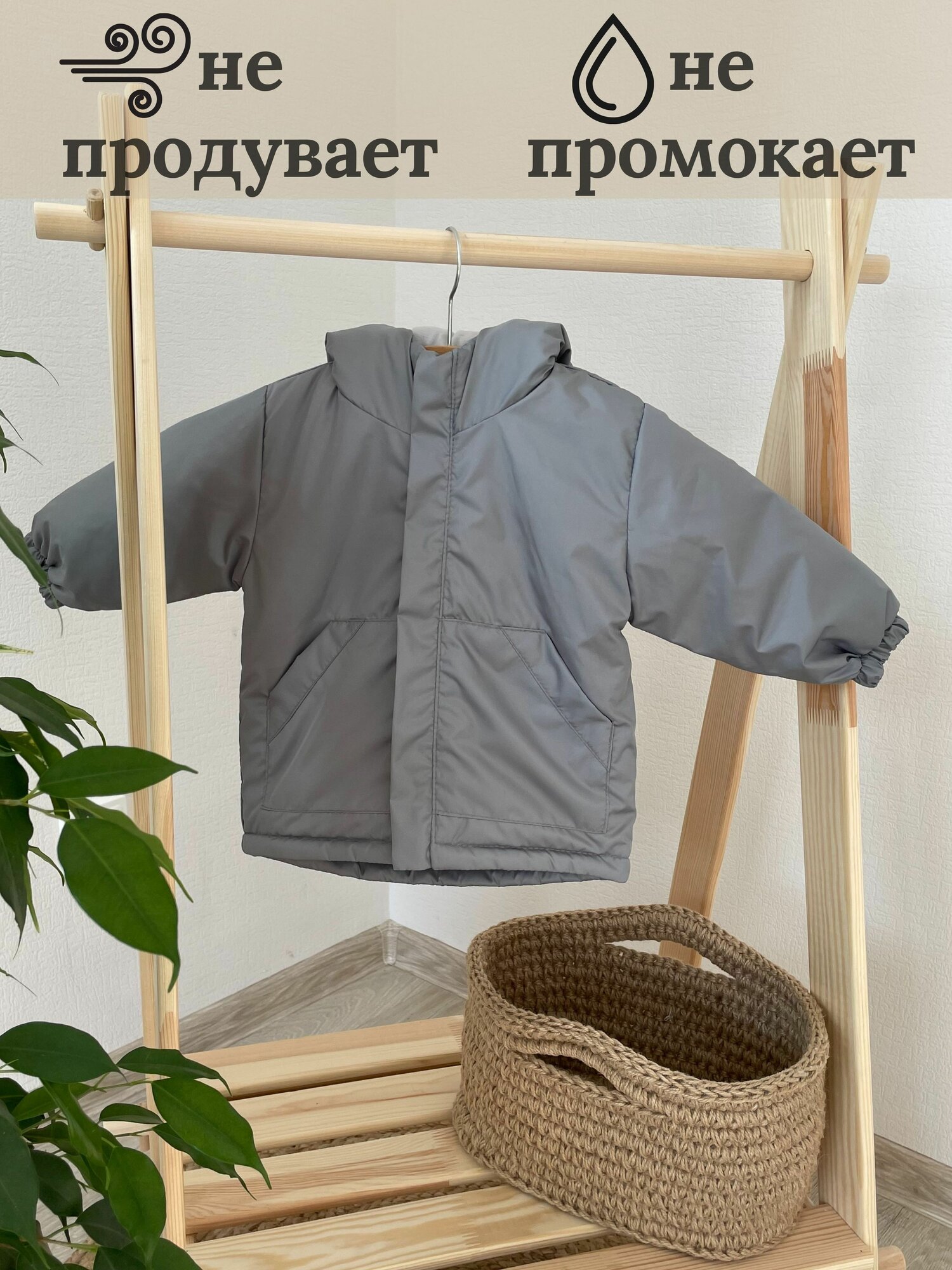 10 цен на Куртка для девочки/для мальчика демисезонная утепленная с капюшоном на хлопковом подкладе Серая 86