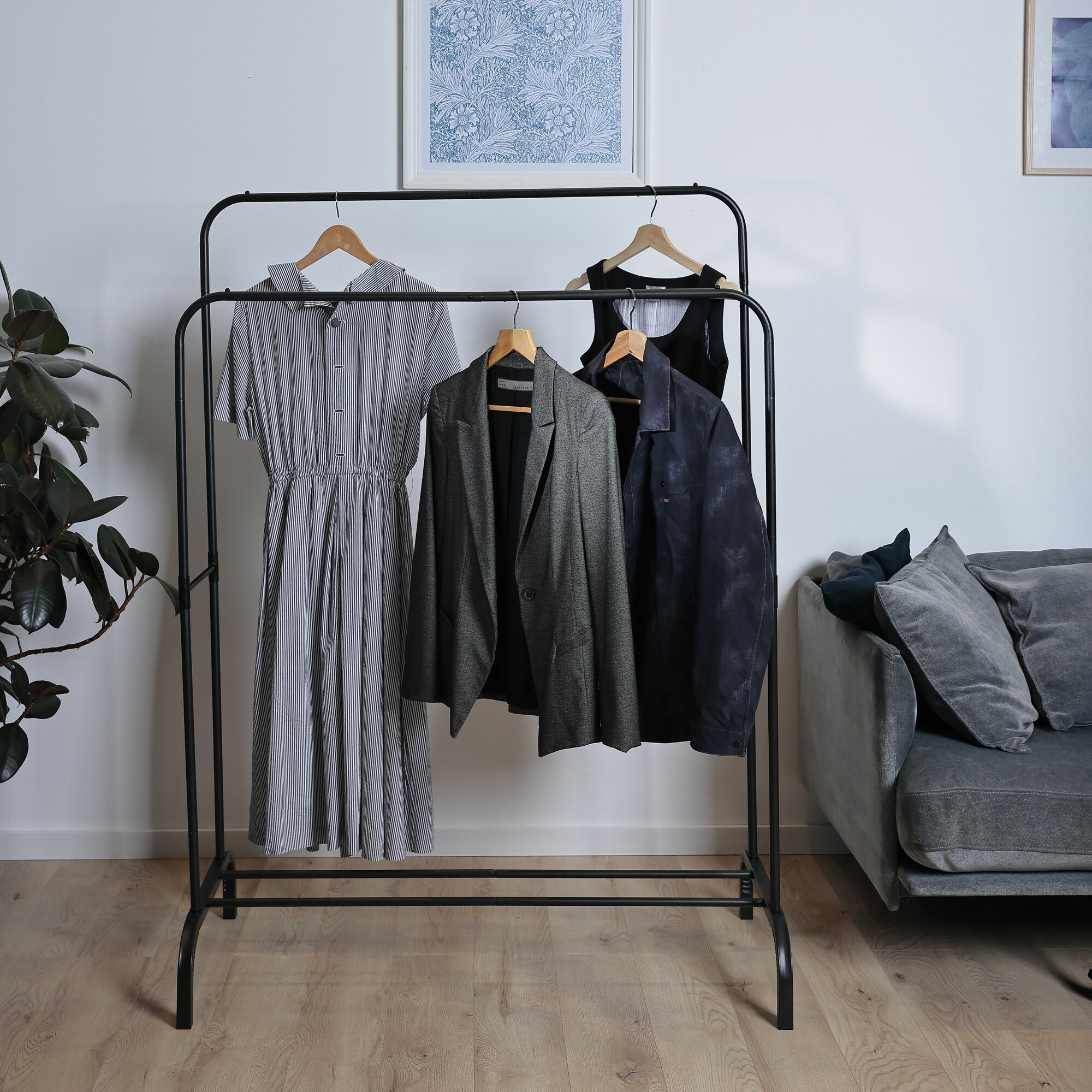 Отзывы на Вешалка напольная для одежды, гардероб в прихожую, вешалка-рейл чёрная металлическая 152х110х54 см