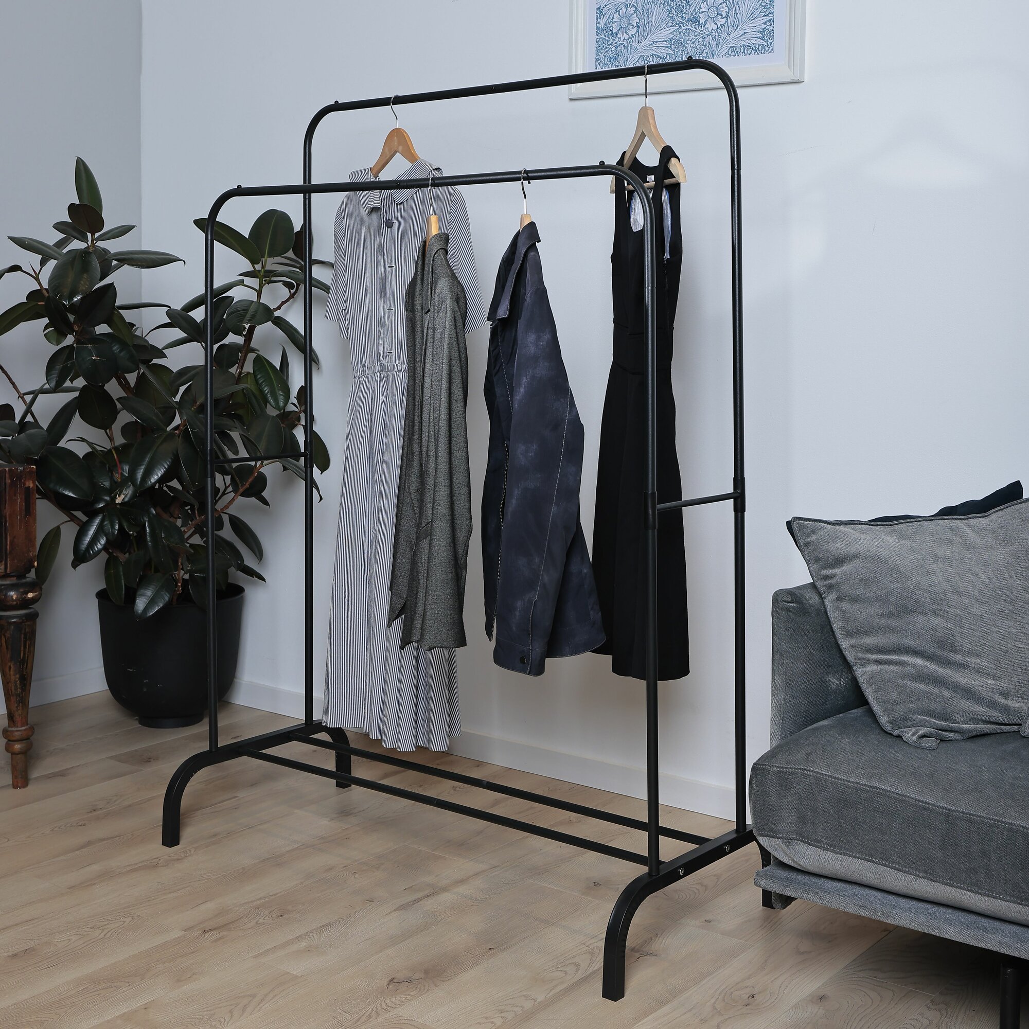 Вешалка напольная для одежды, гардероб в прихожую, вешалка-рейл чёрная металлическая 148х110х40 см 1 350 ₽