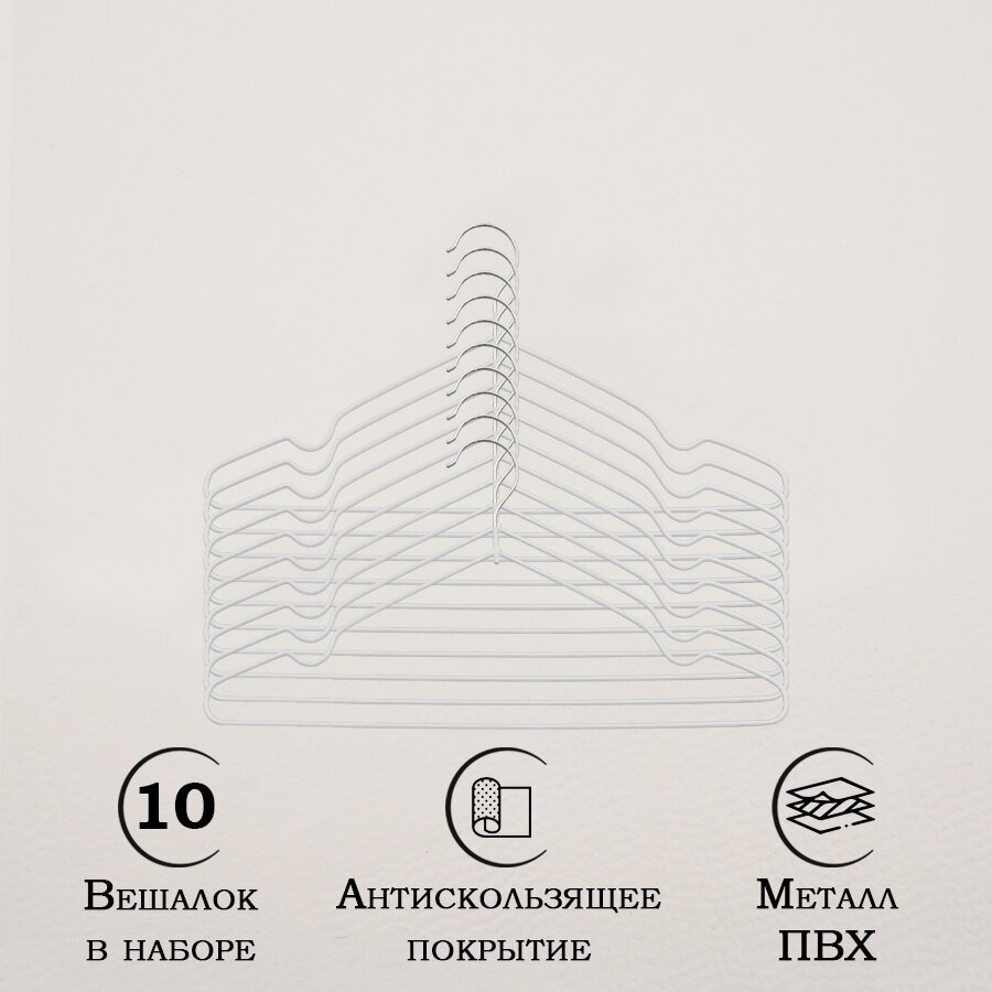 10 цен на Плечики - вешалки для одежды Доляна, 40×20 см,10 шт, антискользящее покрытие, цвет белый