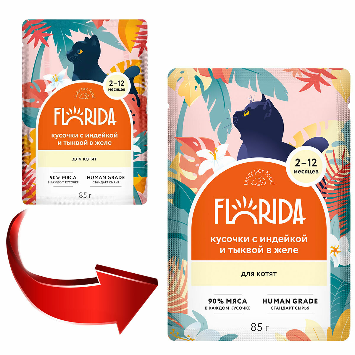 FLORIDA Паучи для котят: кусочки с индейкой и тыквой в желе, 12 шт по 85 г информация: