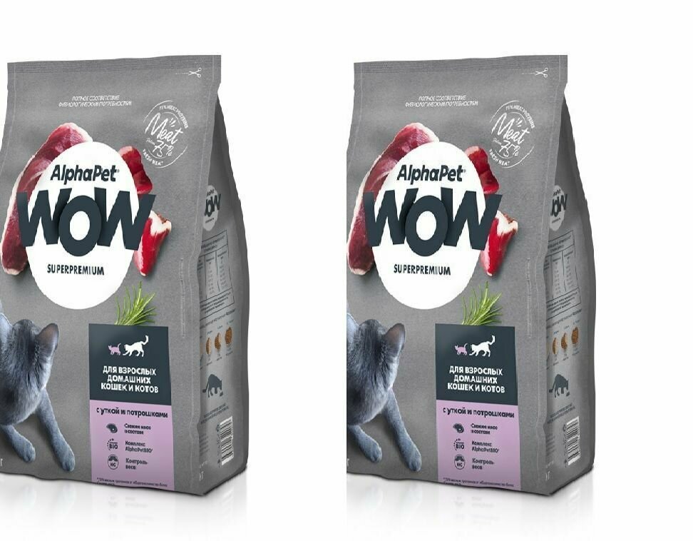 10 цен на AlphaPet WOW корм сухой для взрослых кошек с уткой и потрошкам 2уп по 350г