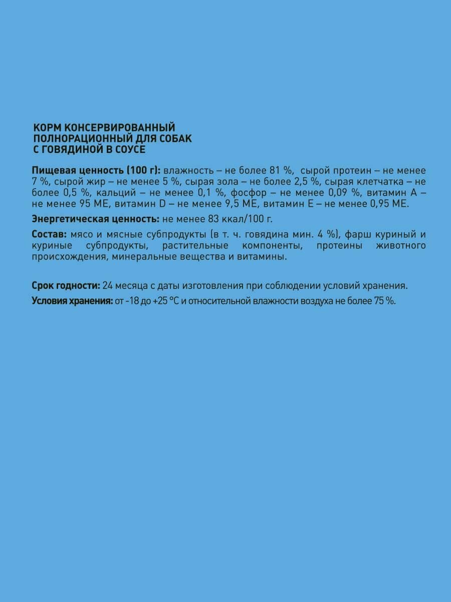 Корм для собак влажный Proхвост 415 гр консервы с говядиной в соусе информация: