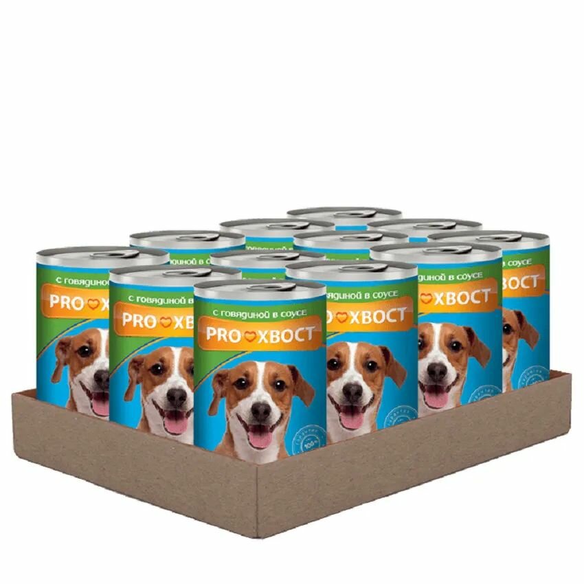 10 цен на В соусе консервы прохвост для собак говядина (цена за упаковку) 415г х 12шт