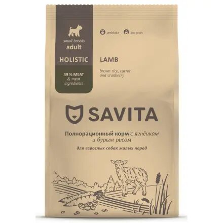10 цен на Сухой корм SAVITA для взрослых собак малых пород с ягненком и бурым рисом, ADULT MINI, Lamb & Brown rice, 3 кг