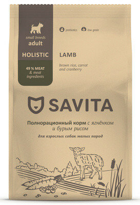 SAVITA для взрослых собак малых пород с ягненком и бурым рисом,1.5кг 1 300 ₽