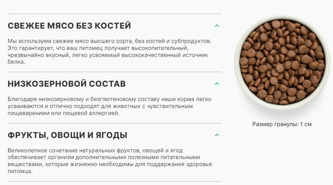 | Особые потребности | беззерновой / гипоаллергенный / для активных животных / для беременных/кормящих / для здоровья кожи и блеска шерсти / для здоровья костей и суставов / для снижения запаха стула / для ухода за ротовой полостью / при чувствительном пищеварении |