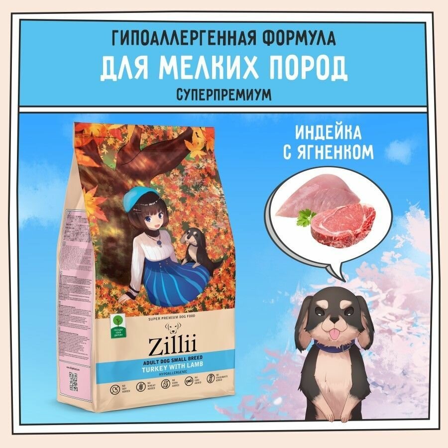 Корм для собак сухой мелких пород диетический ZILLII (Зиллии), 800 г Индейка с Ягненком 729 ₽