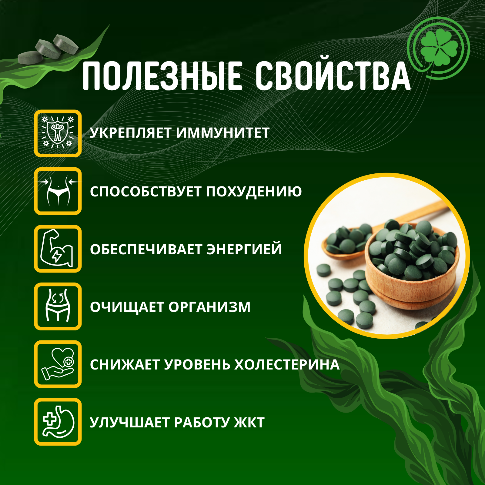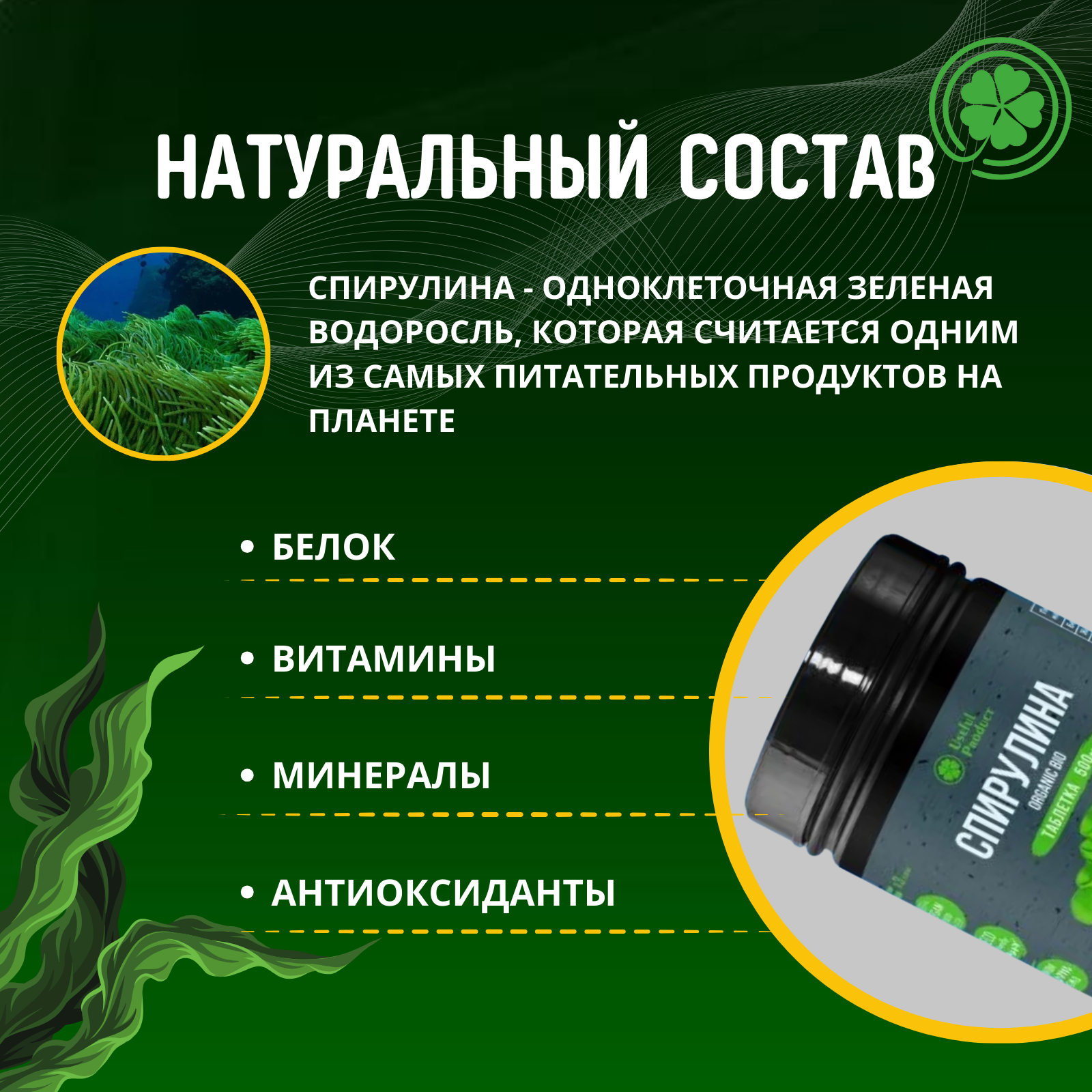 Спирулина в таблетках, 100г (200 таб. по 500 мг)-натуральный суперфуд для иммунитета, энергии и детокса. Useful Product.