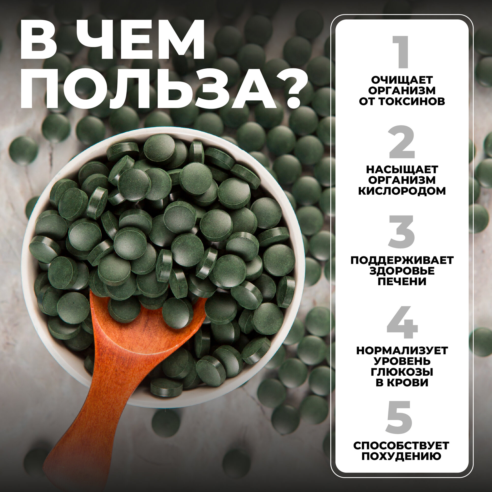 Хлорелла и Спирулина 100% натуральные водоросли, суперфуд в таблетках, для похудения, 100 г 747 ₽