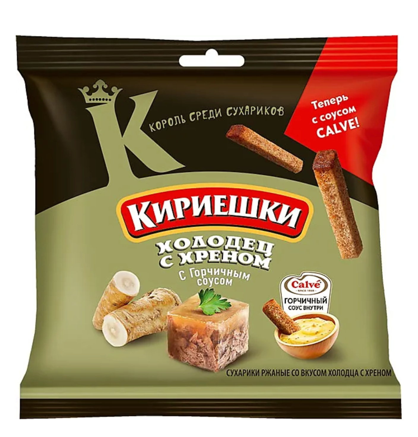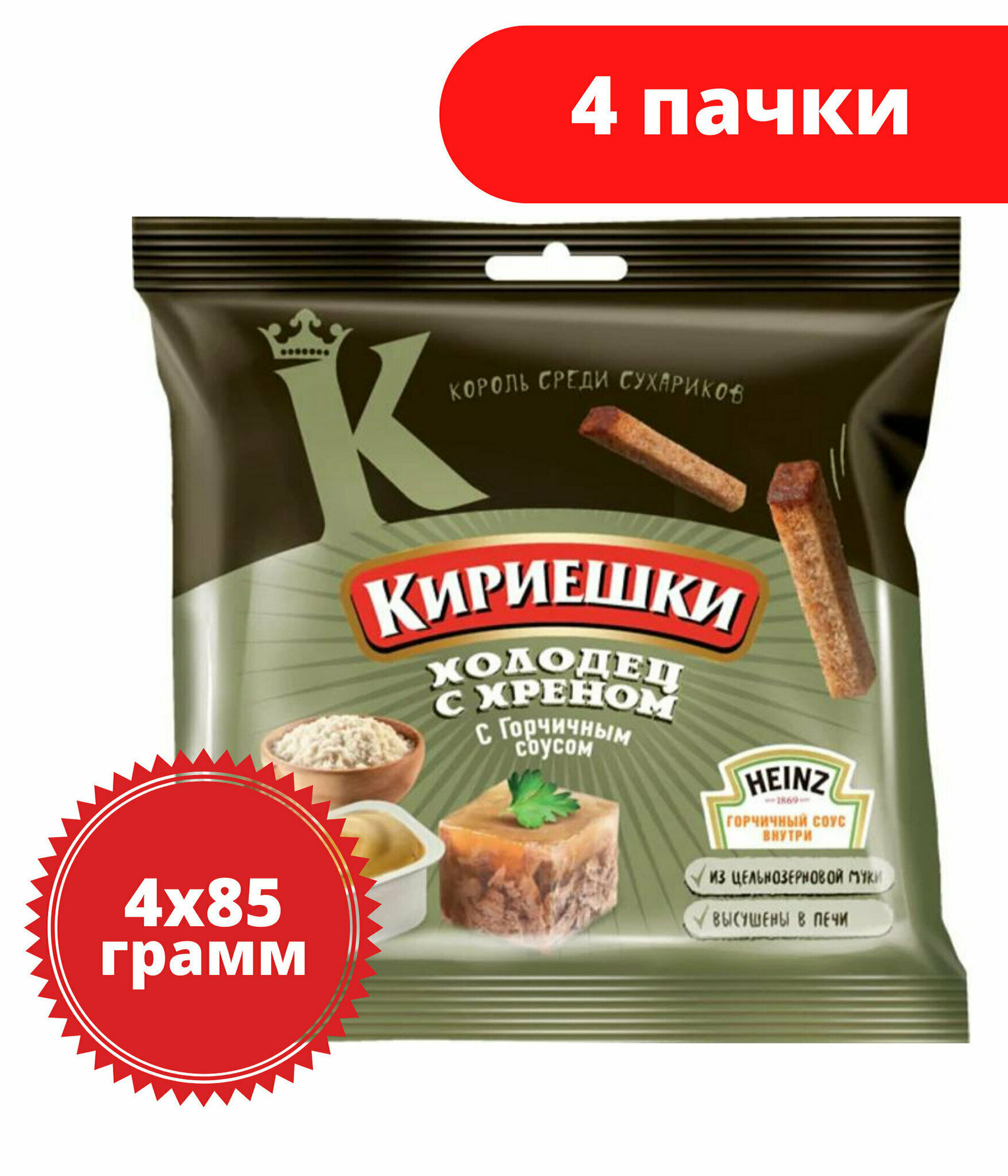 «Кириешки», сухарики со вкусом холодца с хреном и горчичным соусом «Heinz», 4 пачки по 85 г информация: