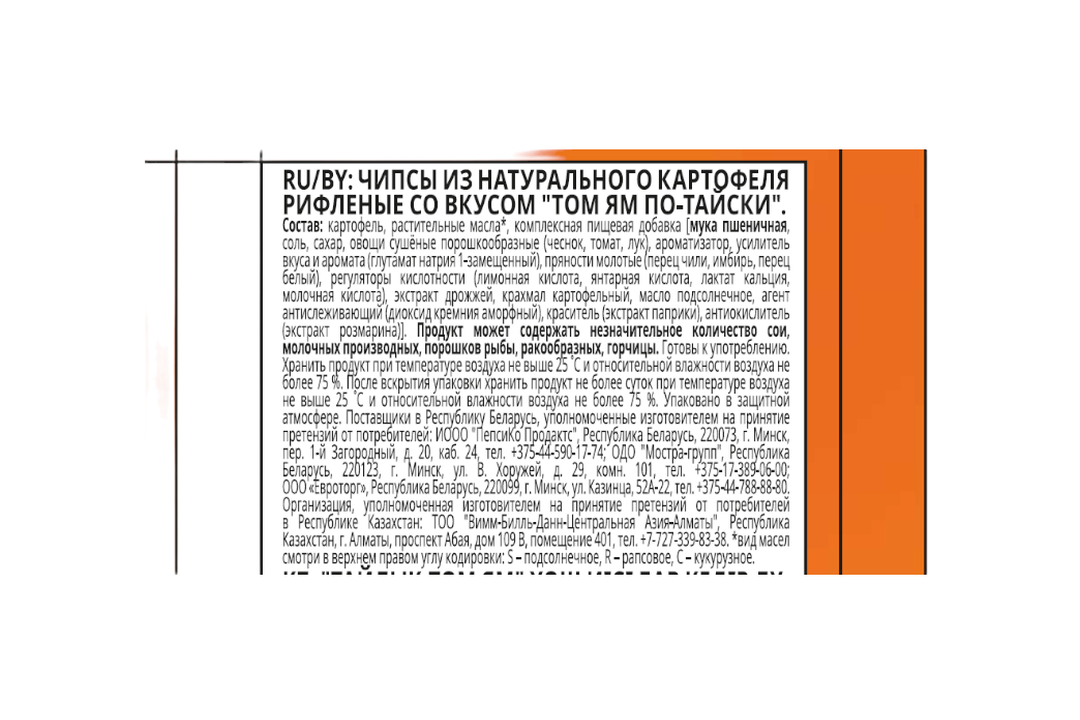Чипсы картофельные LAY'S Том Ям По-тайски, 125г информация: