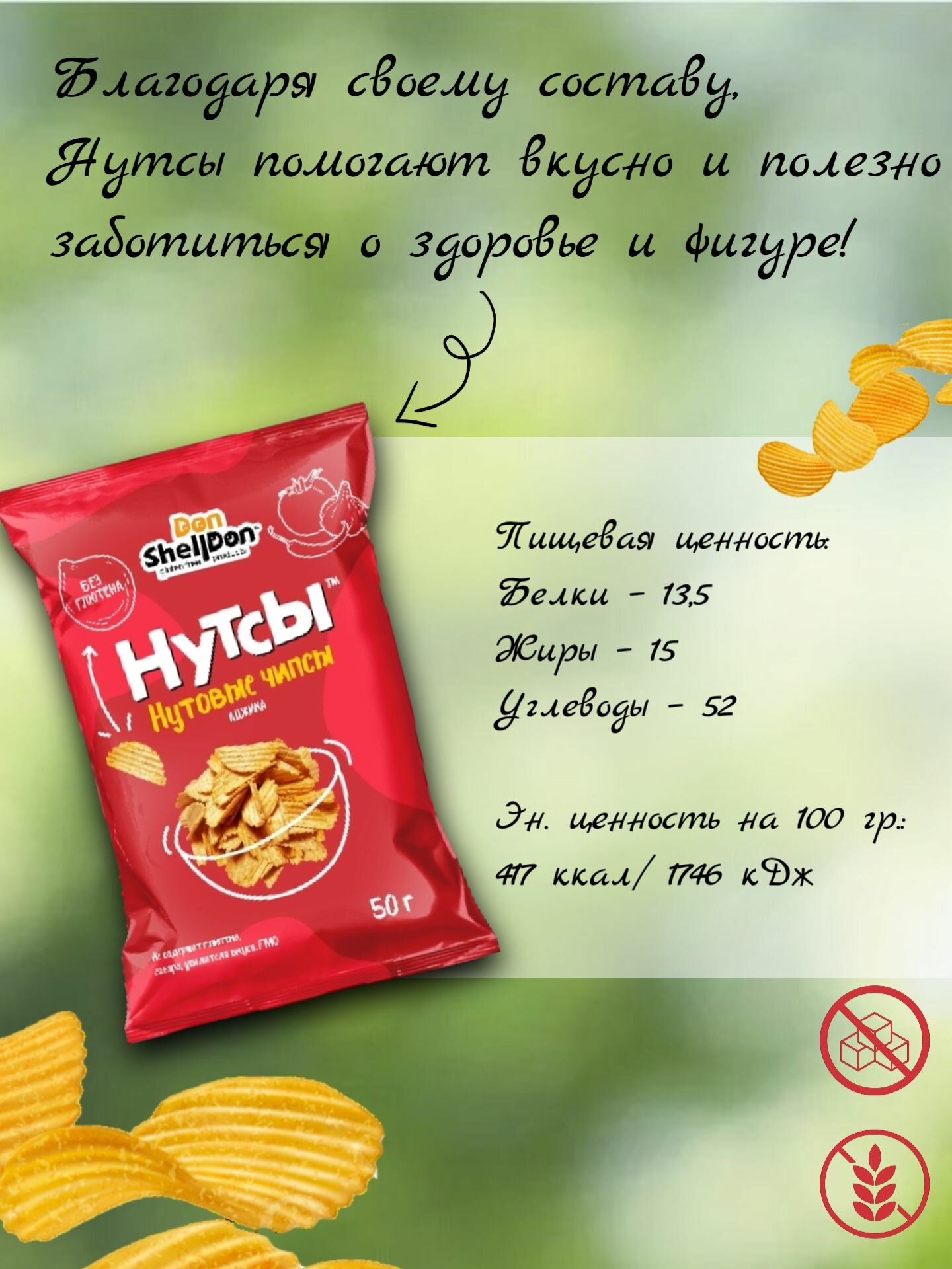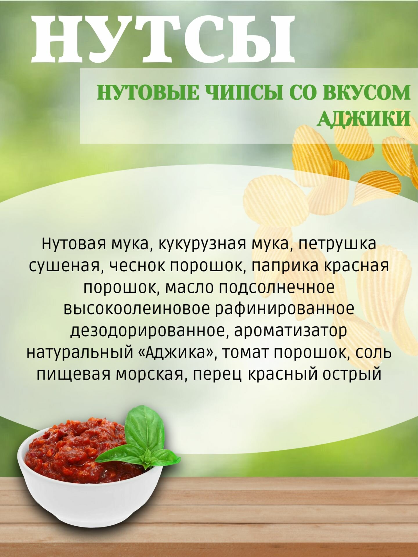 Чипсы нутовые б/глютена "Нутсы" аджика, 50 гр (2 шт. в наборе) информация:
