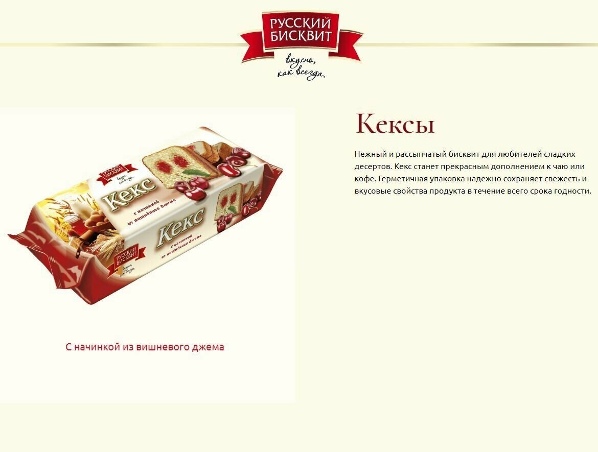 Кекс с вишневым джемом "Русский бисквит" 225 г 4 шт информация: