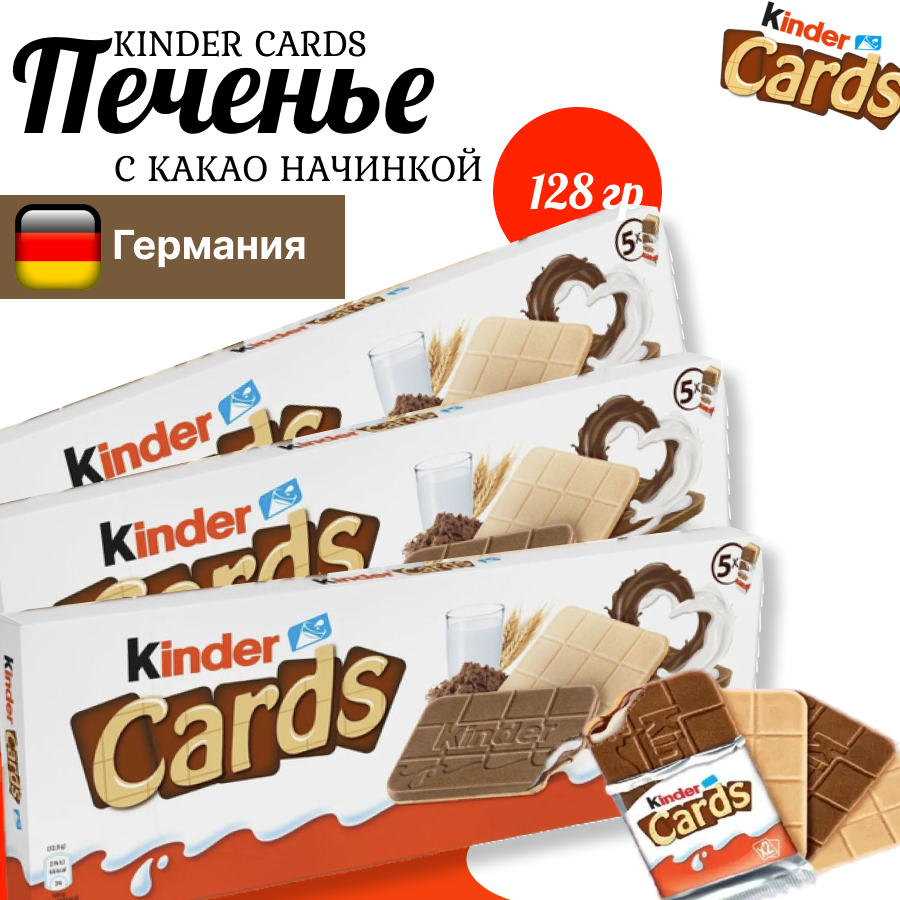 Печенье с какао начинкой Киндер Кардс, 3 шт по 128гр.