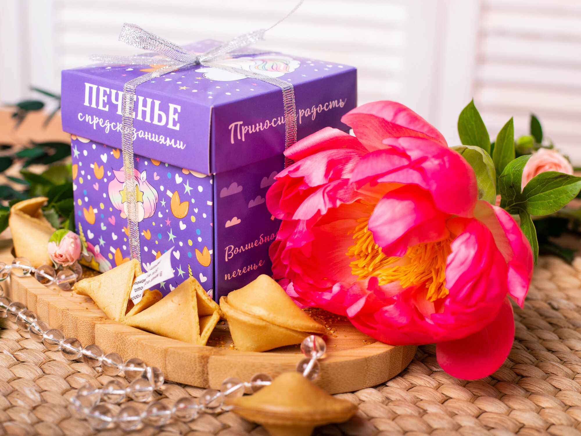 Печенье с предсказаниями "Цветы" 5 штук, 35 гр, Корпорация Удачи, Подарок