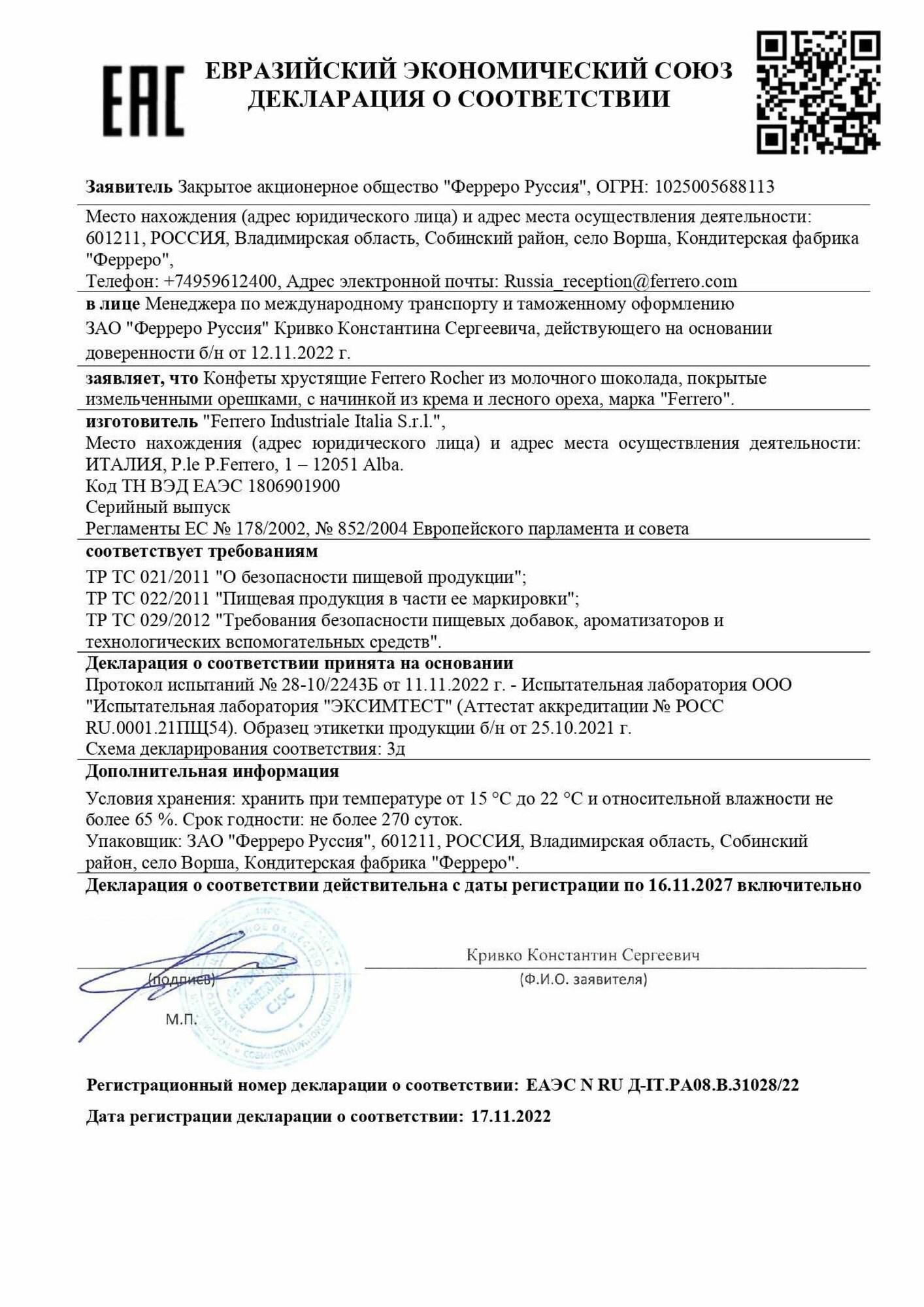 Конфеты хрустящие Ferrero Rocher, из молочного шоколада, с начинкой из крема и лесного ореха, 200 г 2 шт 1 848 ₽