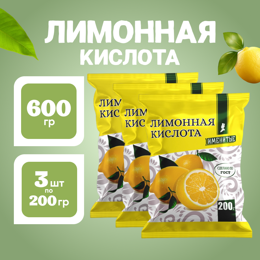 Лимонная кислота пищевая 600 гр "Именитые" регулятор кислотности моногидрат информация: