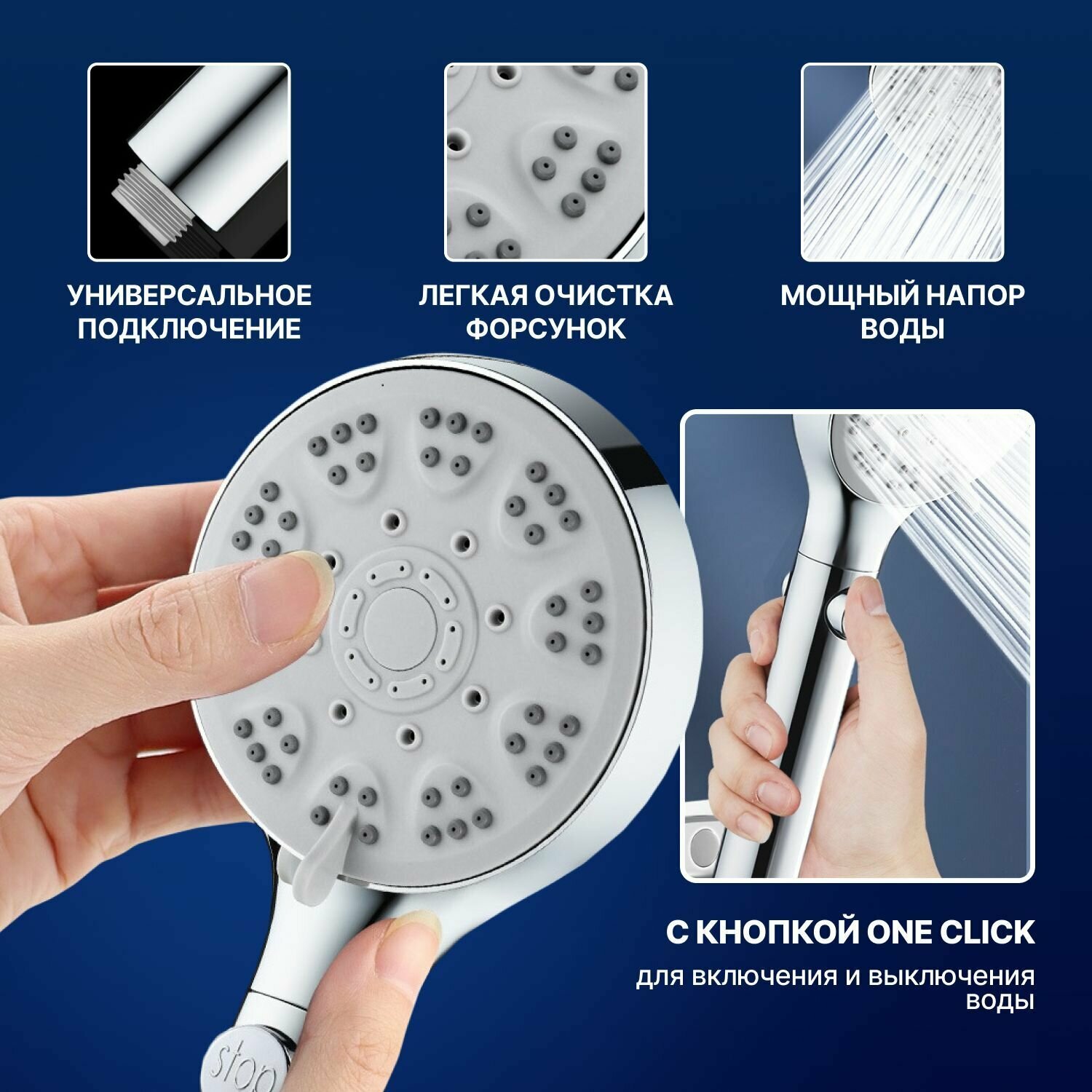 10 цен на Лейка для душа VIEIR, 5 режимов с кнопкой START/STOP, хром