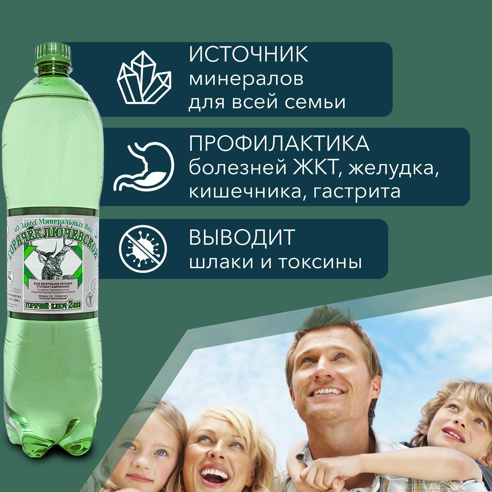 10 цен на Вода Горячий Ключ 2000. Объем 1.5л*6. Вода минеральная питьевая газированная природная целебная лечебная, выводит токсины, для детей