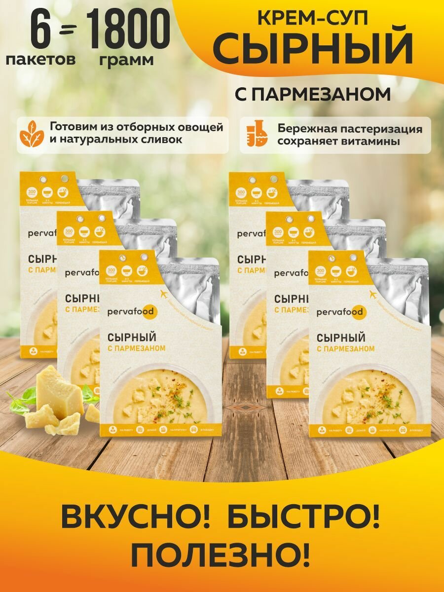 Pervafood сырный крем-суп с пармезаном 300 гр-6 шт, суп из сыра, готовая еда, готовое блюдо информация: