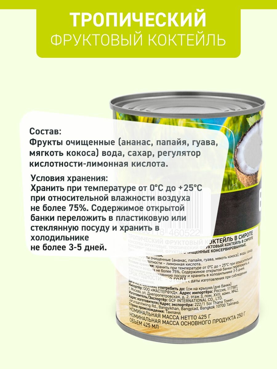 Тропический фруктовый коктейль Botanica в сиропе, 425 мл информация:
