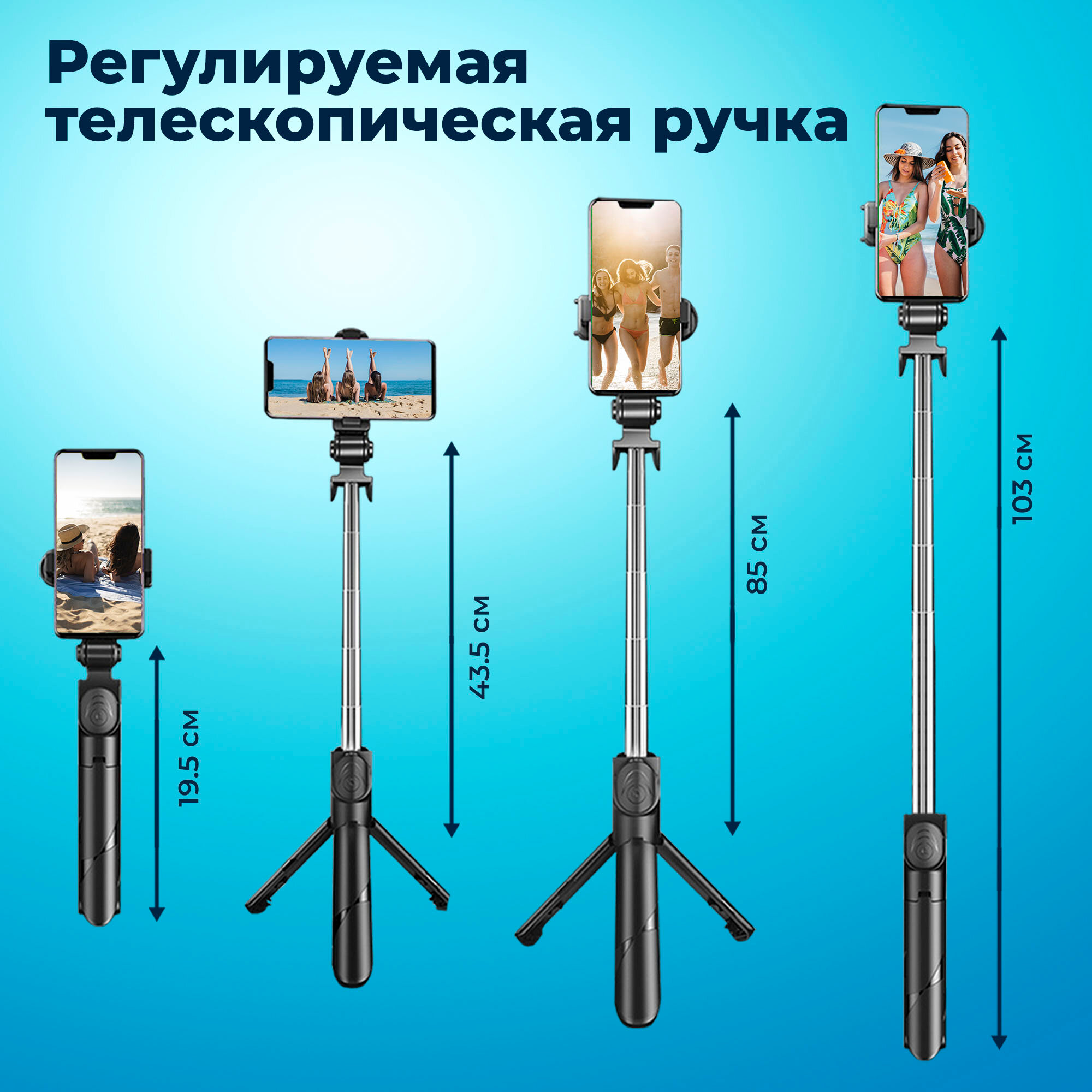 | Особенности | Bluetooth, аккумулятор, пульт ДУ, с поворотом, удлинительная штанга |