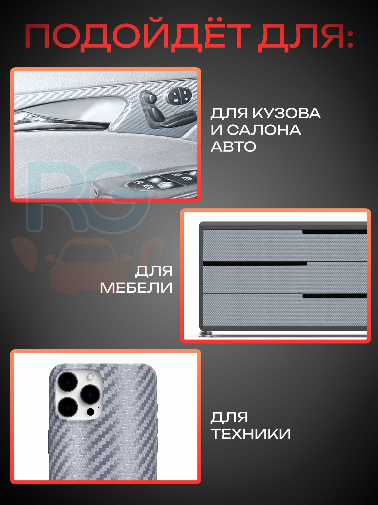 "Самоклеющийся 3D-карбон" - защитная пленка для авто и мебели 1 102 ₽