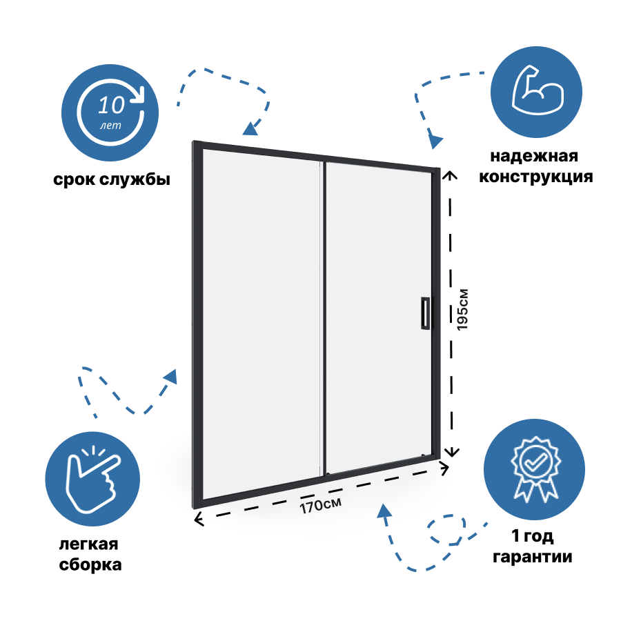 Отзывы на Душевая дверь в нишу 170х195 см., Ulitka Safari стекло прозрачное