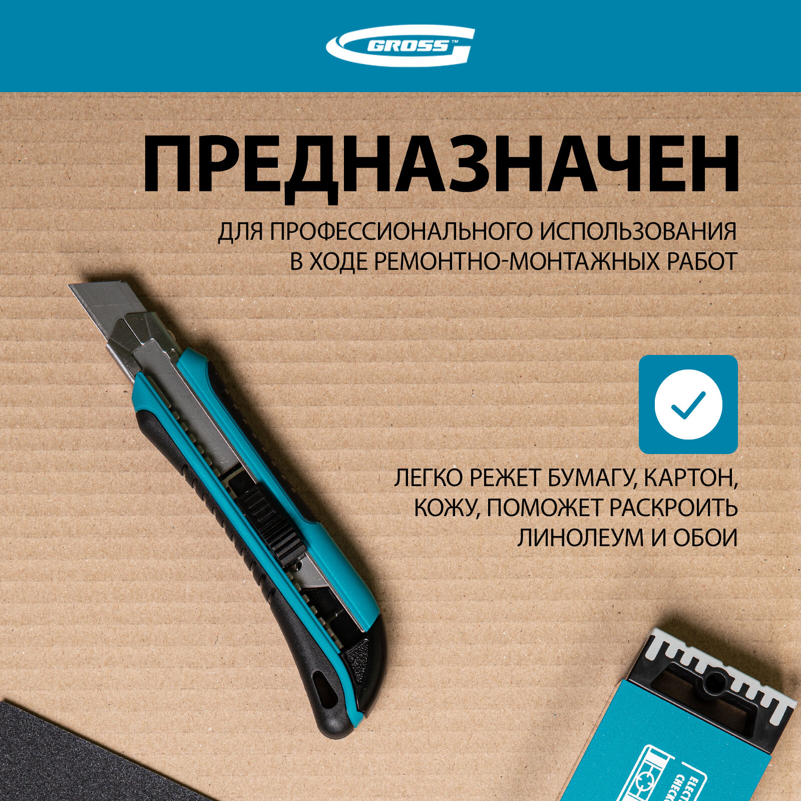 10 цен на Нож Gross 170 мм обрезин. ABS - корпус, выдв.сегм.лезвие 18 мм (SK-5), метал. напр-щая, 5 лезвий 78893